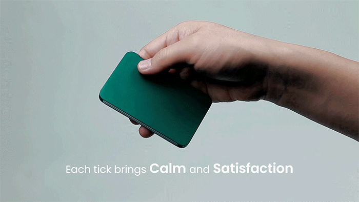 機械式ラチェットで駆動する独自の機構により心地よいクリック音が鳴り、無心で動かしたくなる感触。手が自然と動いて、ちょっとした気分転換にも