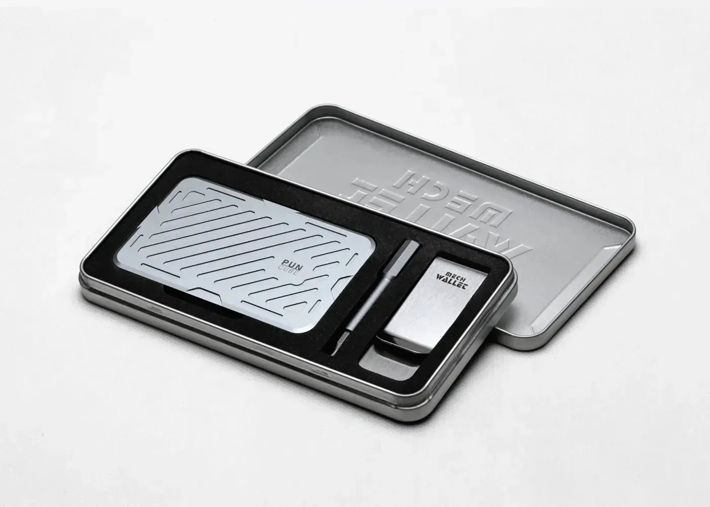 Mech Walletはアルミのケースに入れてお届けします。
