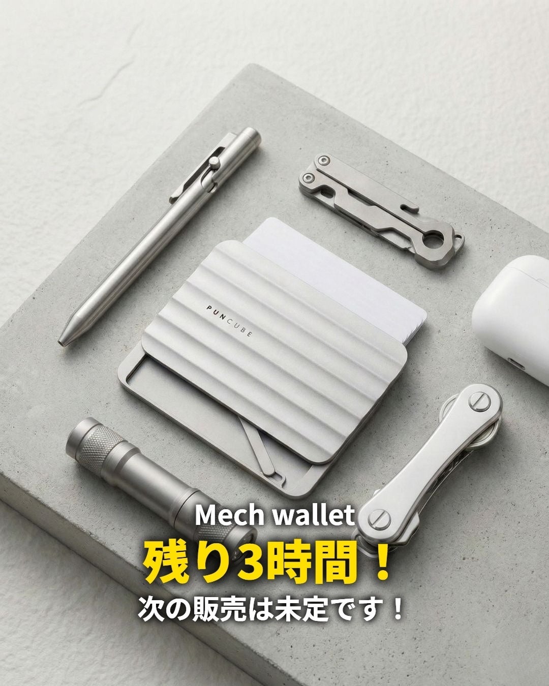 2026/03/31 21:00支援者の皆様、ならびに『Mech Wallet』をご検討中の皆様 こんばんは。MONO PLUS合同会社です。日頃より多大なるご支援・ご注目をいただき、誠にありがとうございます。大変多くの反響をいただいておりました本プロジェクトですが、いよいよ本日23:59をもちまして受付終了となります。残り時間はあとわずか「3時間」となりました。皆様の温かいご支援のおかげで、本プロジェクトの支援総額は現在「620万円」を突破いたしました。心より御礼申し上げます。前回のGREEN FUNDINGでの1,000万円達成と合わせますと、累計で1,620万円を超えるご支援となり、私たちチーム一同、これほど多くの方に『Mech Wallet』をご期待いただけている事実を重く受け止め、大変感謝しております。■ お気に入り登録をしてご検討中の皆様へ次回の一般販売スケジュールや価格等は、現時点では未定となっております。 今回限定の「特別割引価格」でのご提供は、【本日23:59】までとなります。もしお迷いの方がいらっしゃいましたら、後になって「あの時申し込んでおけばよかった」と後悔されることのないよう、ぜひこの機会にご検討くださいませ。 スマートで実用性に優れた『Mech Wallet』は、日々の生活をほんの少し豊かに、そして便利にしてくれると確信しております。▼プロジェクト詳細・ご支援はこちらから https://camp-fire.jp/projects/908168/view▼1,500円OFFクーポンはこちらから下記の記事の下にクーポンがあります。https://www.lifehacker.jp/article/machi-ya-mechwallet-end-908168/▼Puncubeチタン製キーリング プレゼント企画実施中(※応募制・支援者限定)https://camp-fire.jp/projects/908168/view/activities/823469#main ■ すでにご支援いただいたサポーターの皆様へ皆様の熱いご支援のおかげで、ここまで大きなプロジェクトに成長させることができました。2026年2月の発送に向けて、皆様のご期待に応えられるよう引き続き全力で進行してまいります。もしよろしければ、この残り3時間のタイミングで、本プロジェクトをSNS等でシェアしていただけますと大変励みになります。本日23:59のプロジェクト終了まで、引き続き何卒よろしくお願い申し上げます。 もっと見る