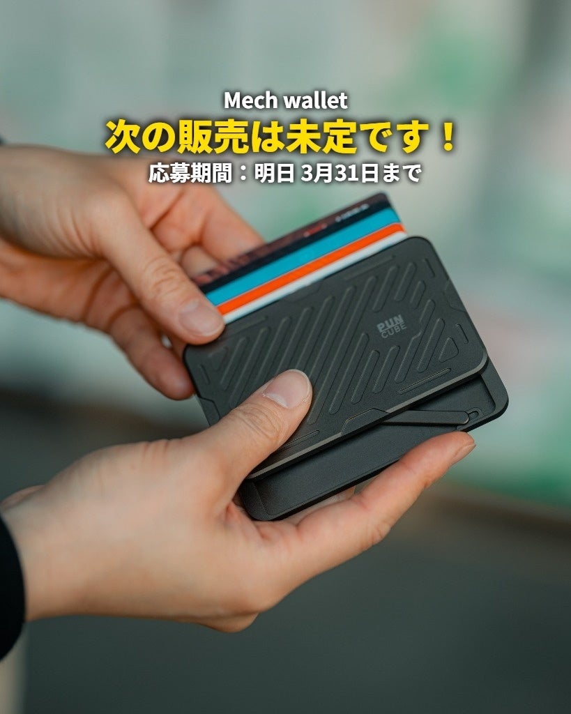 支援者の皆様へおはようございます。MONO PLUS合同会社です。昨夜、23:59をもって『Mech Wallet』」プロジェクトが、無事に掲載期間を終了いたしました。今回のプロジェクトでは、最終的に640万円を超えるご支援をいただき、私たちの想像を上回る、あたたかい応援を賜りました。多くの皆様にMech Walletの価値に共感いただけたこと、チーム一同、心より感謝申し上げます。本当にありがとうございました。▼ 今後のスケジュール・ご配送について現在、発送に向けた準備を開始しております。メーカーと連携しながら、6月の配送完了に向けて進行してまいります。今後の生産状況や輸送スケジュール、具体的なお届け時期につきましては、本「活動報告」を通じて、随時ご報告させていただきます。Mech Walletが皆様の手元に届き、日々の支払いがよりスムーズで、スマートな体験へと変わることを、私たちも心より楽しみにしております。商品が無事にお手元に届き、ご満足いただくまでが、私たちのプロジェクトです。最後まで責任をもって対応してまいりますので、お届けまで今しばらくお待ちいただけますと幸いです。改めまして、この度は多大なるご支援を賜り、誠にありがとうございました。引き続き、何卒よろしくお願い申し上げます。MONO PLUS合同会社チーム一同