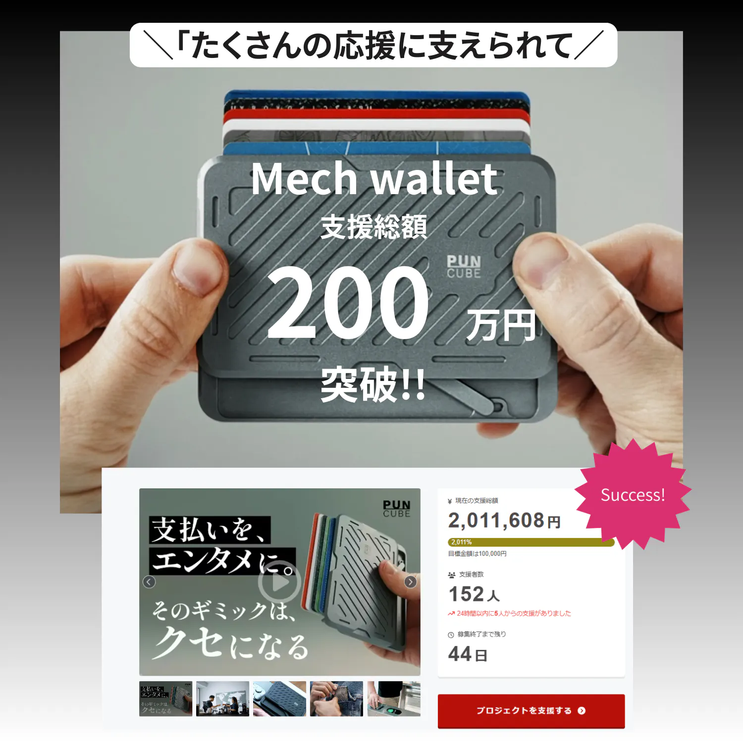 Mech Walletプロジェクトは、開始2日目にして支援総額200万円を突破いたしました。