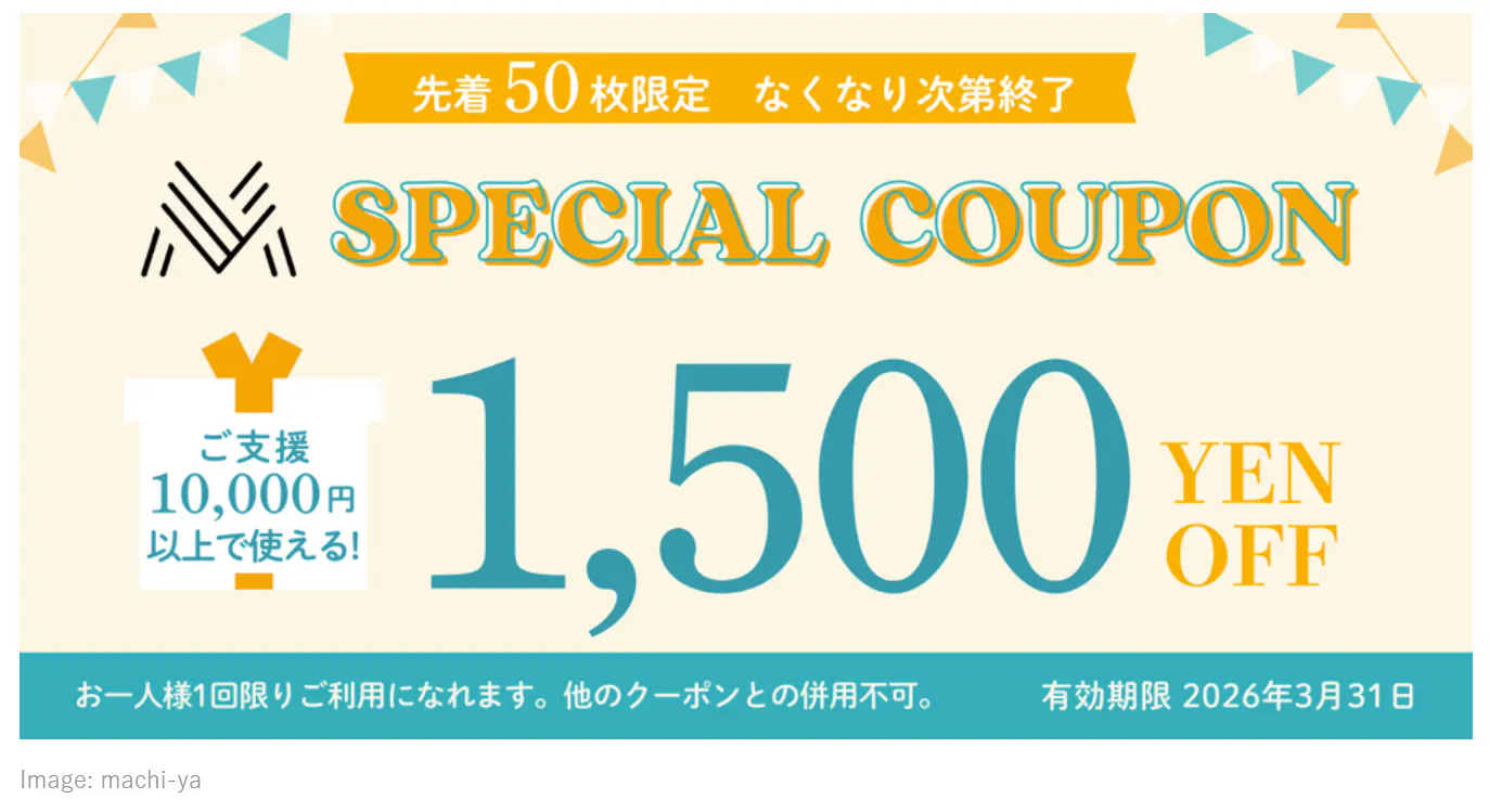 現在、machi-ya限定 1,500円OFFクーポンがご利用いただけます。
