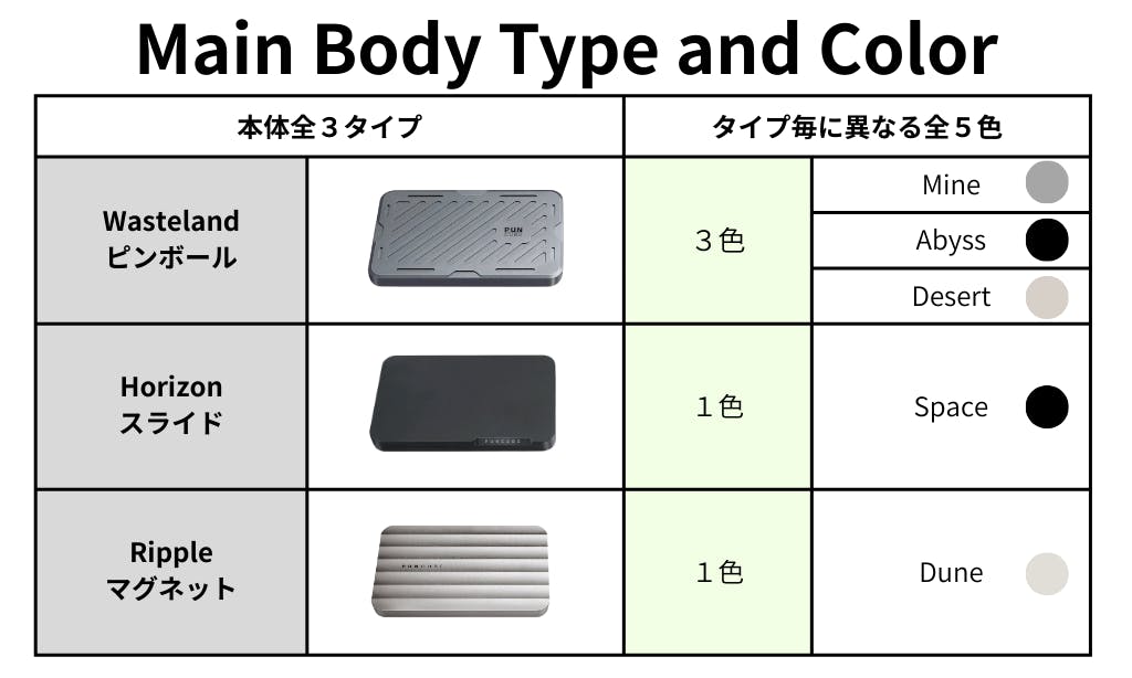 全3タイプ / 3色展開