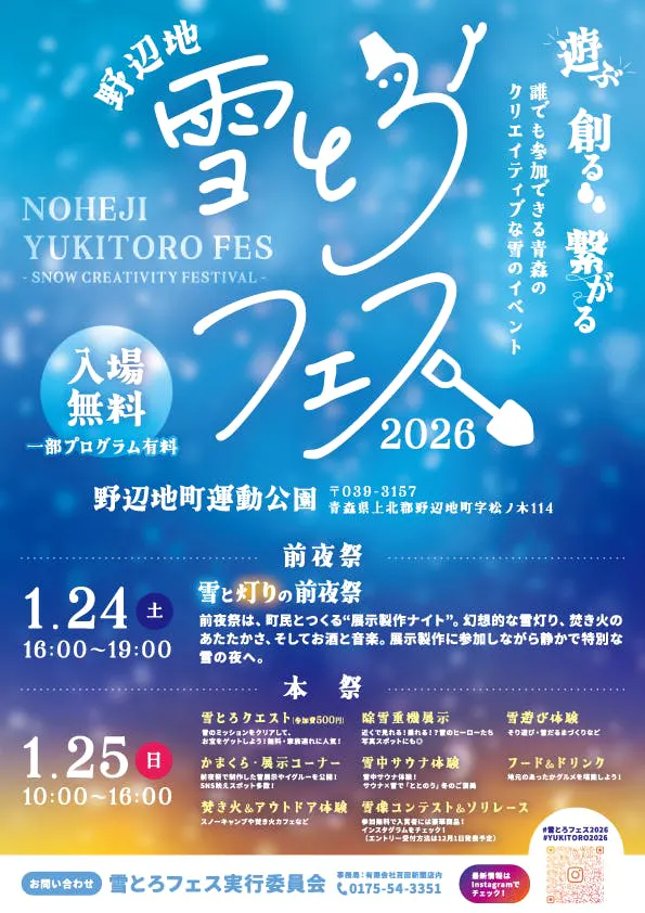 こんにちは。「野辺地 雪とろフェス」実行委員会です。