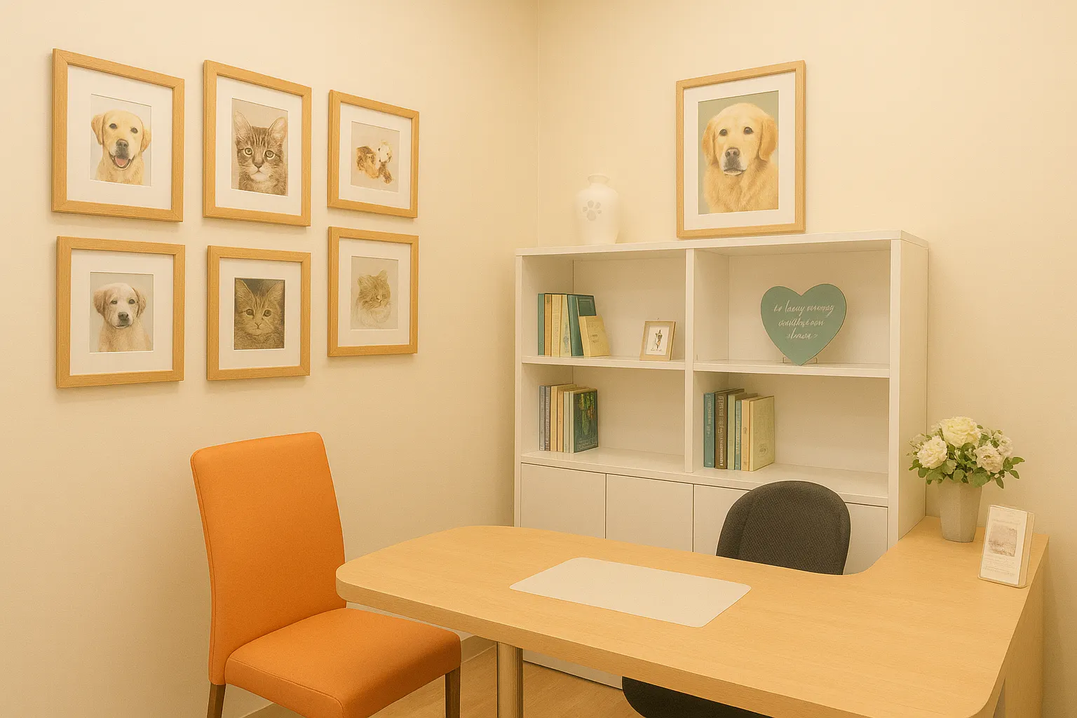 飼い主様の感情や気持ちを吐き出す機会を設け、ペットロスを経験した方が「話してよかった」と思える、静かな空間を用意します。