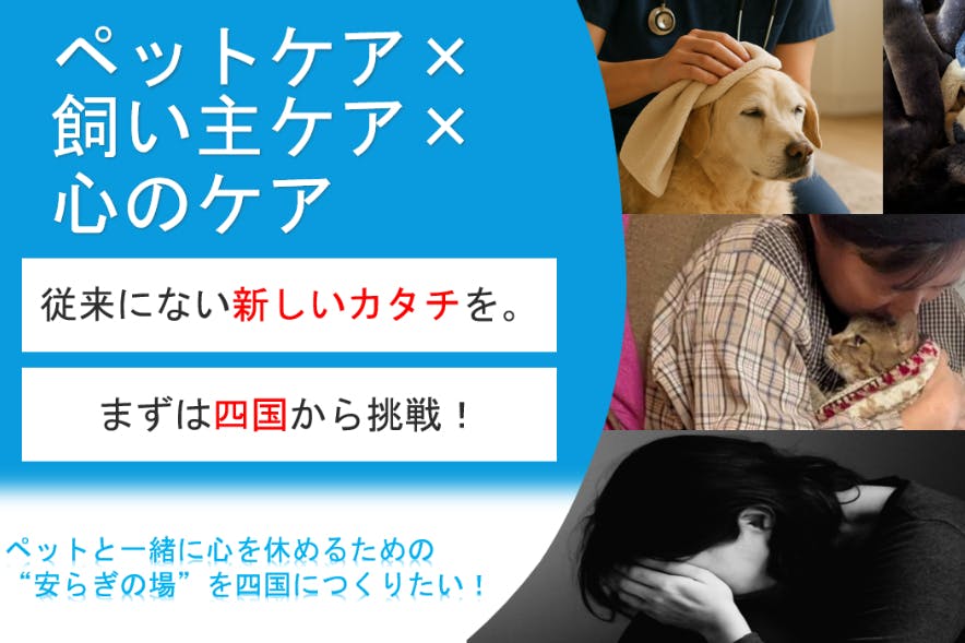 四国で「ペットの介護に疲れた飼い主様がペットを預けながら休息や自分の場所を確保してリフレッシュできる場所」、そして「ペットロスに苦しむ方が、一息つける場所」を作りたい。
