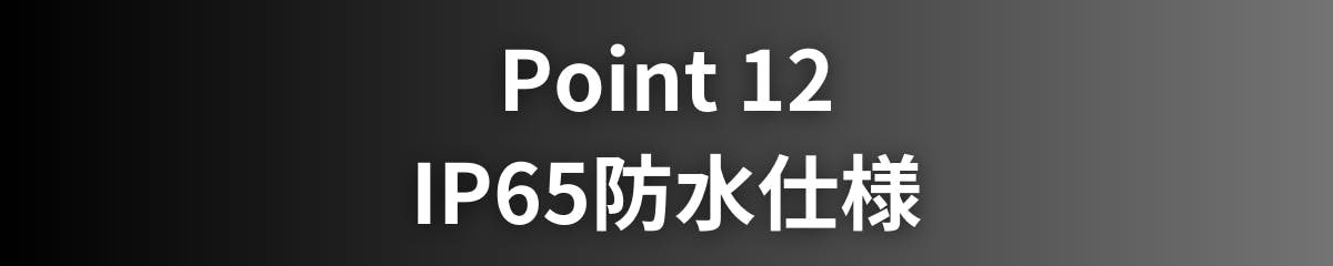 1. 防水仕様(IP65)ですが、水中での使用や長時間の水濡れには対応しておりません。雨天での使用や一時的な水滴の付着には耐えられますが、水没や高圧洗浄などは避けてください。
