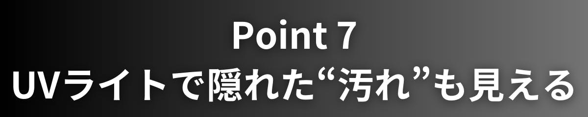 A5.UVライトは検査や汚れの確認などに使用するもので、直接目に照射しないようご注意ください。用途に合わせた安全な距離でご使用ください。