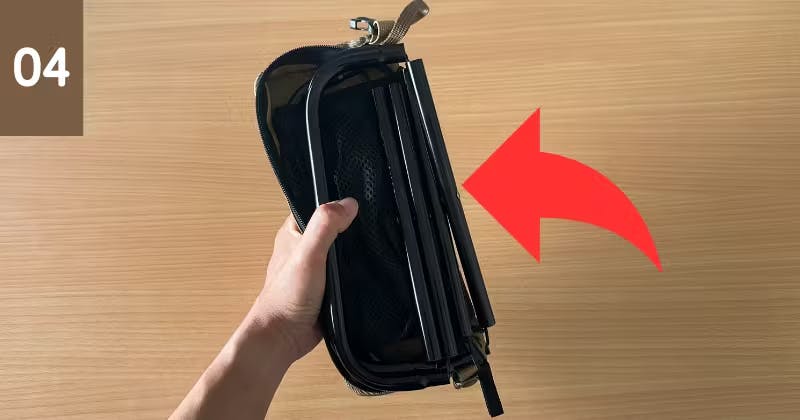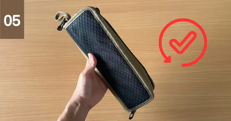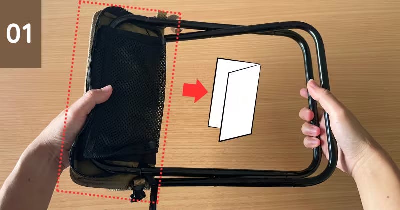 使い終わったら折りたたみ、なんと座面部分をひっくり返せばそのままポーチに早変わり。