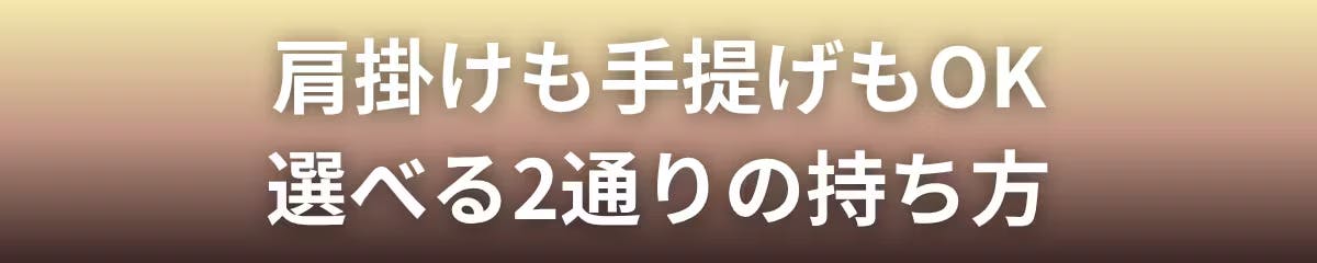 両手を空けたい時はショルダーに、さっと持ちたい時は手提げに。スタイルや荷物に合わせて柔軟に対応できる、使い手にやさしい2WAY仕様です。