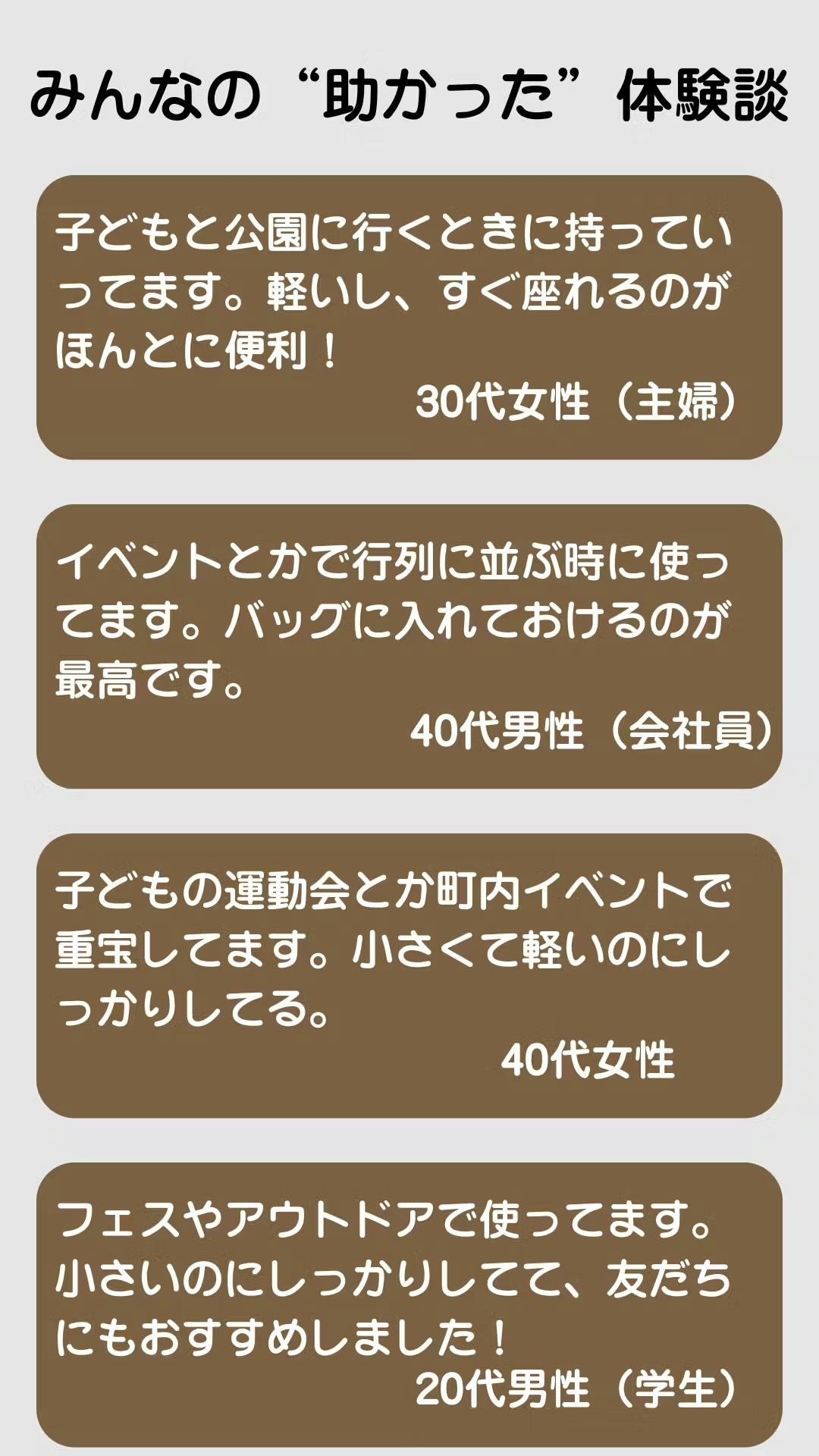忙しいお出かけや、急な休憩にもぴったりな“すぐ使える椅子”です。