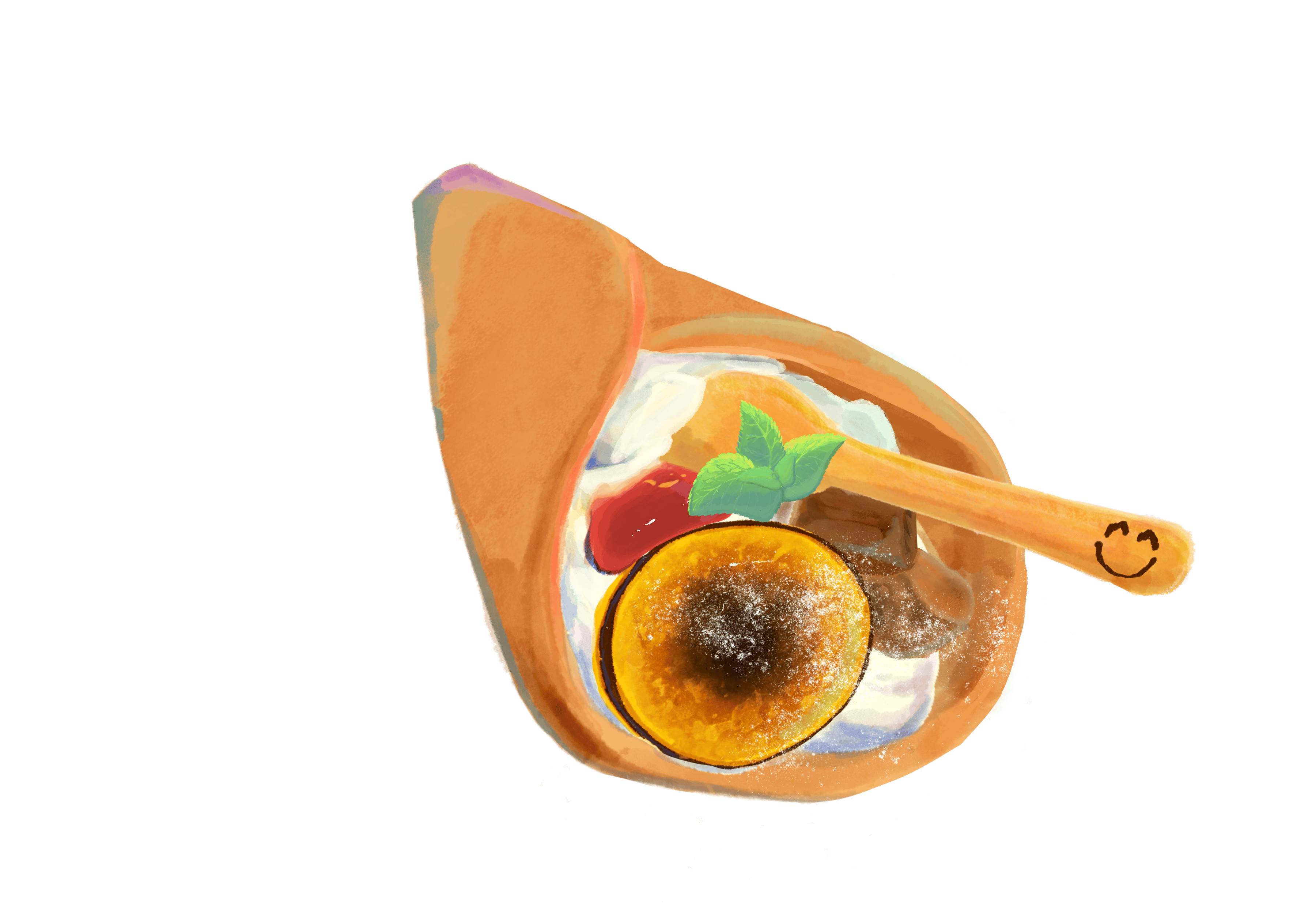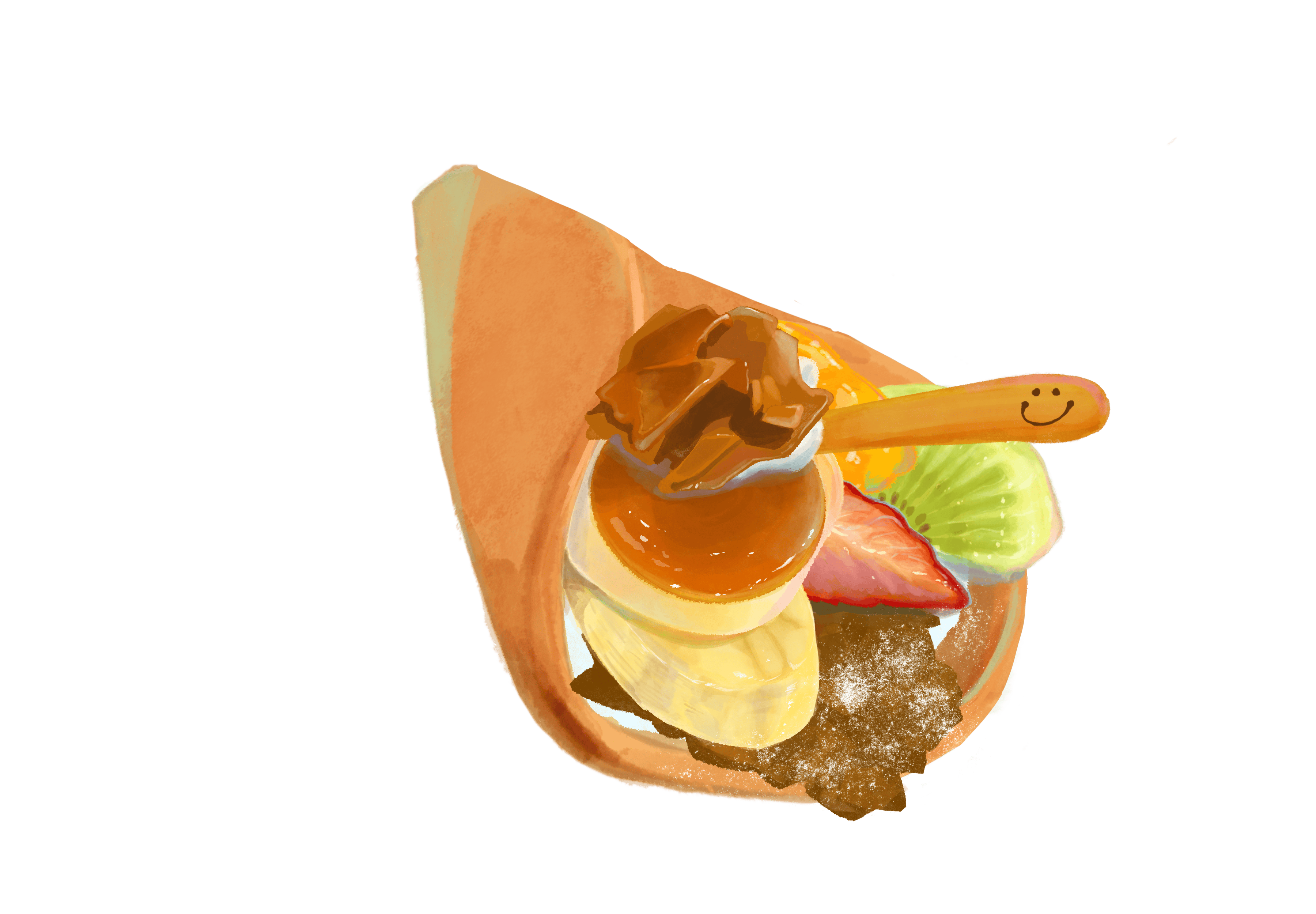 私の大好きなオランジュプリュスさんの食べたら心が明るくなるような美味しいケーキやお菓子のように、皆さんが私のイラストで気分が明るくなるように気持ちを込めました。