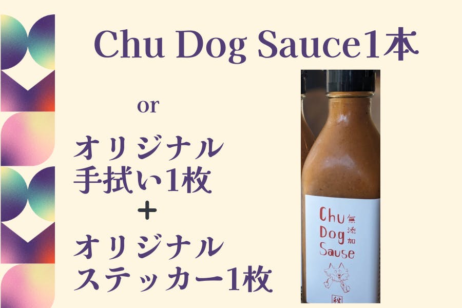 →【Chu Dog Sauce1本お届け】or手拭い1枚+ステッカー