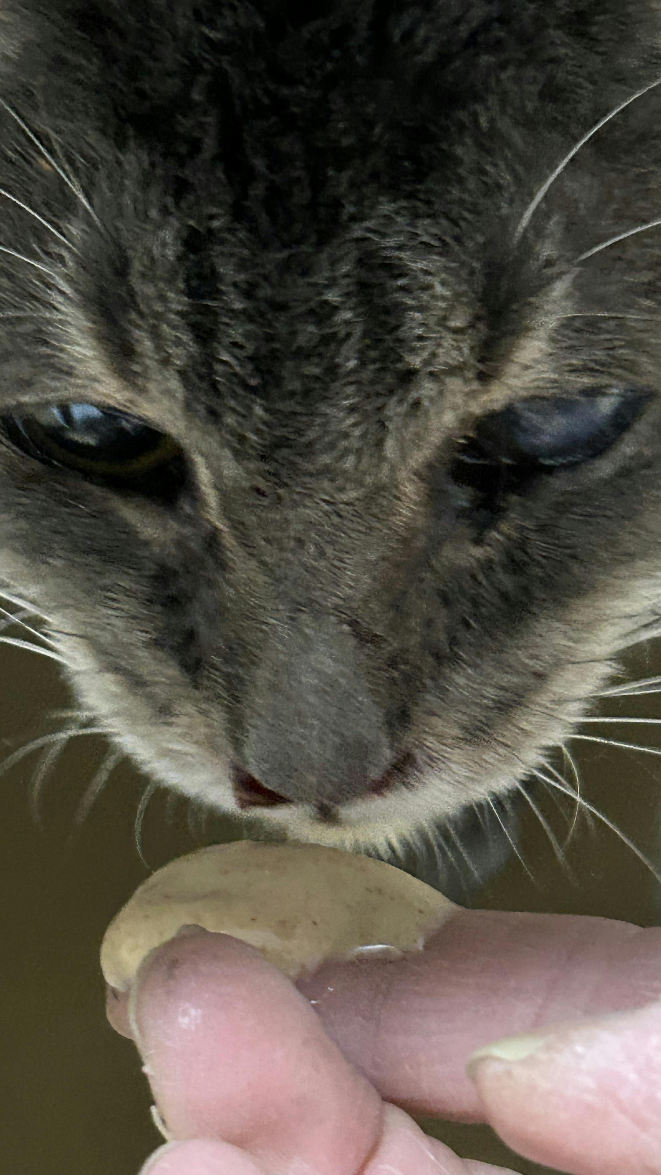 デカ太郎が居着くようになり白黒もー吉と黒猫三宅チビは来なくなった。それぞれのエサやりオバさんとこで食べてる。デカは全力で威嚇しHori宅をテリトリーにした。黒猫チーは近づけず、私が帰宅すると同時に,潜んでる場所から大声て鳴く。その声でデカが小屋から出てくるから私としては,チーにはひっそりと待ってて欲しい。寝床にしてる山田さん宅の車の下で待って欲しい。絶対に届けてくれるって分かってるよね?デカがチーを追い払わないよう、デカに先にフードを与える。食べてる間に,チーに届ける!って私は計算してるなのに、チーは泣き叫ぶ。私はモタモタやってられない.焦る。焦せるけど,指が痛いからパウチ開けるのも手間が掛かって、、パニック。疲れて帰った身に辛い。泣きたいのはこっちよ!と言いたくなる。チーを保護したら良いのか、、もしよろしければ、こちらのフードが今,欲しいの。食べれないけど,こちらも無くなって