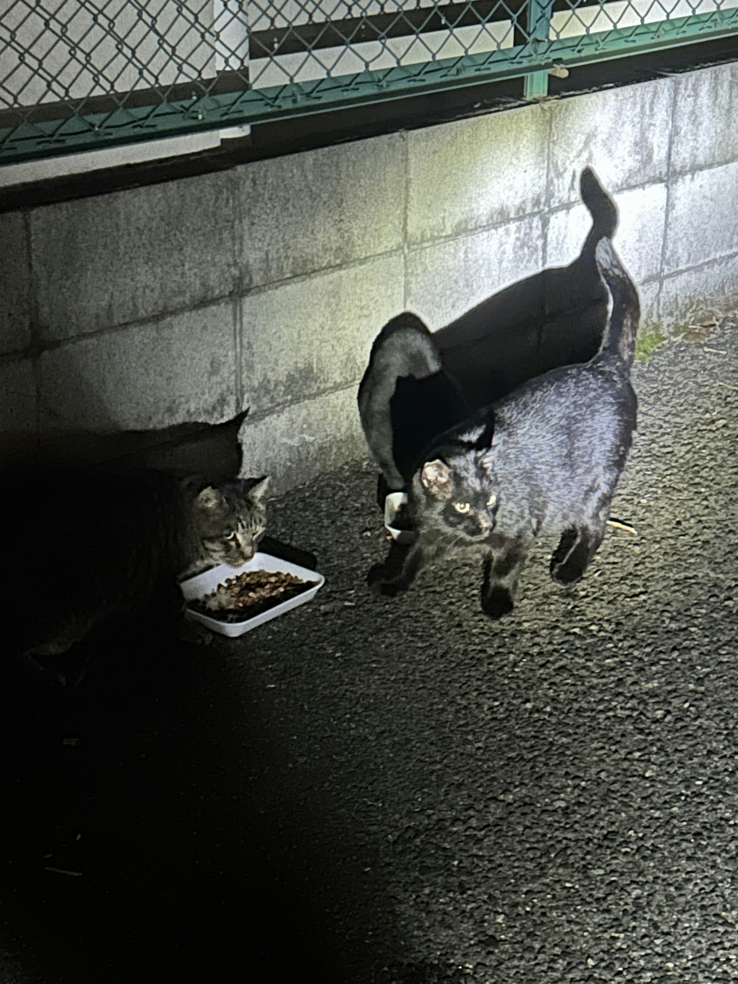 真夜中から風が強くなり器は飛ばされ大変でした。温めたパウチも冷え,途中家に戻り湯煎し直しました。終わりの方に食べる子達が冷たい物なんてダメだから。