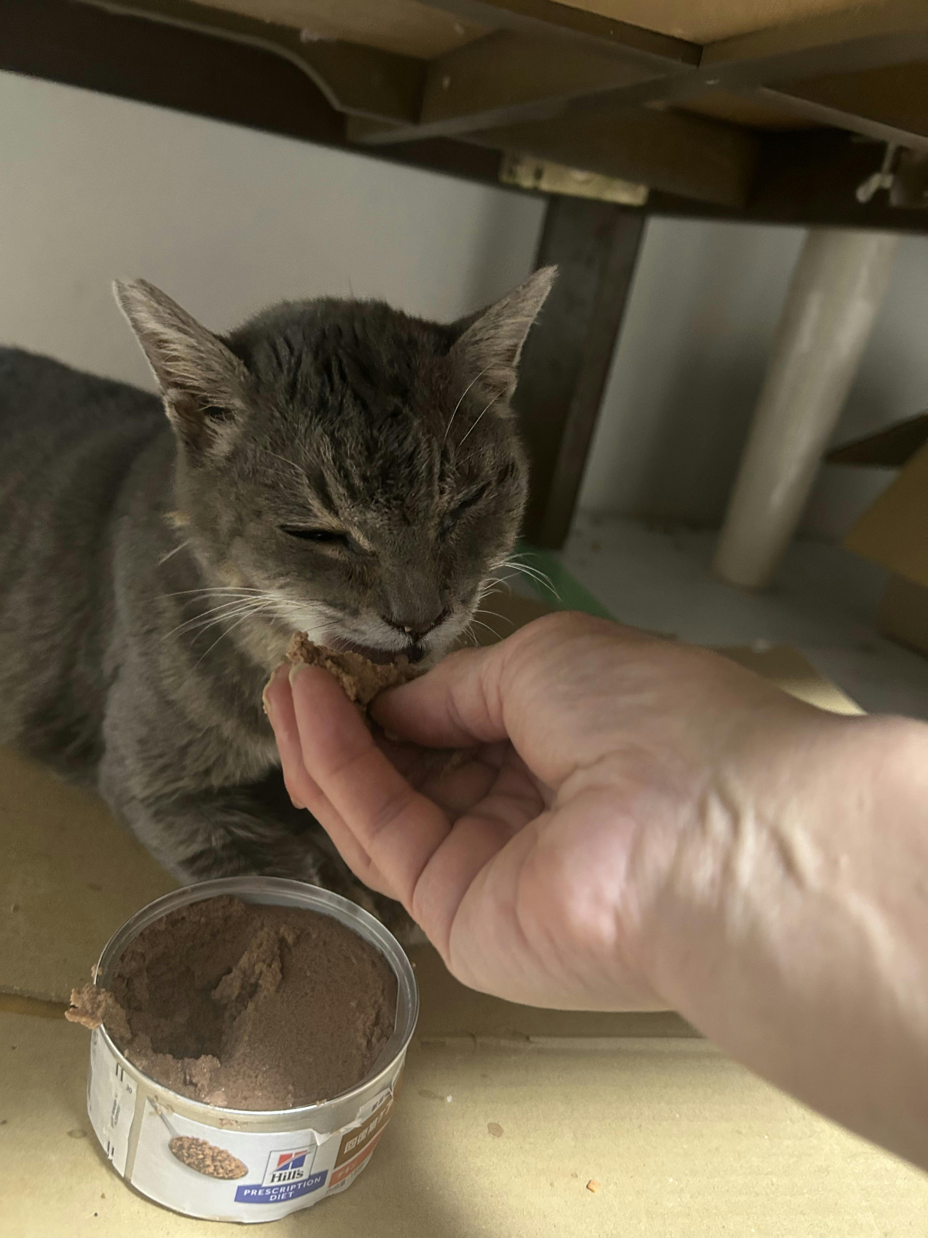 半分たべます。残りは私のその日の判断で痩せてる子、風邪気味な子に与えてます。