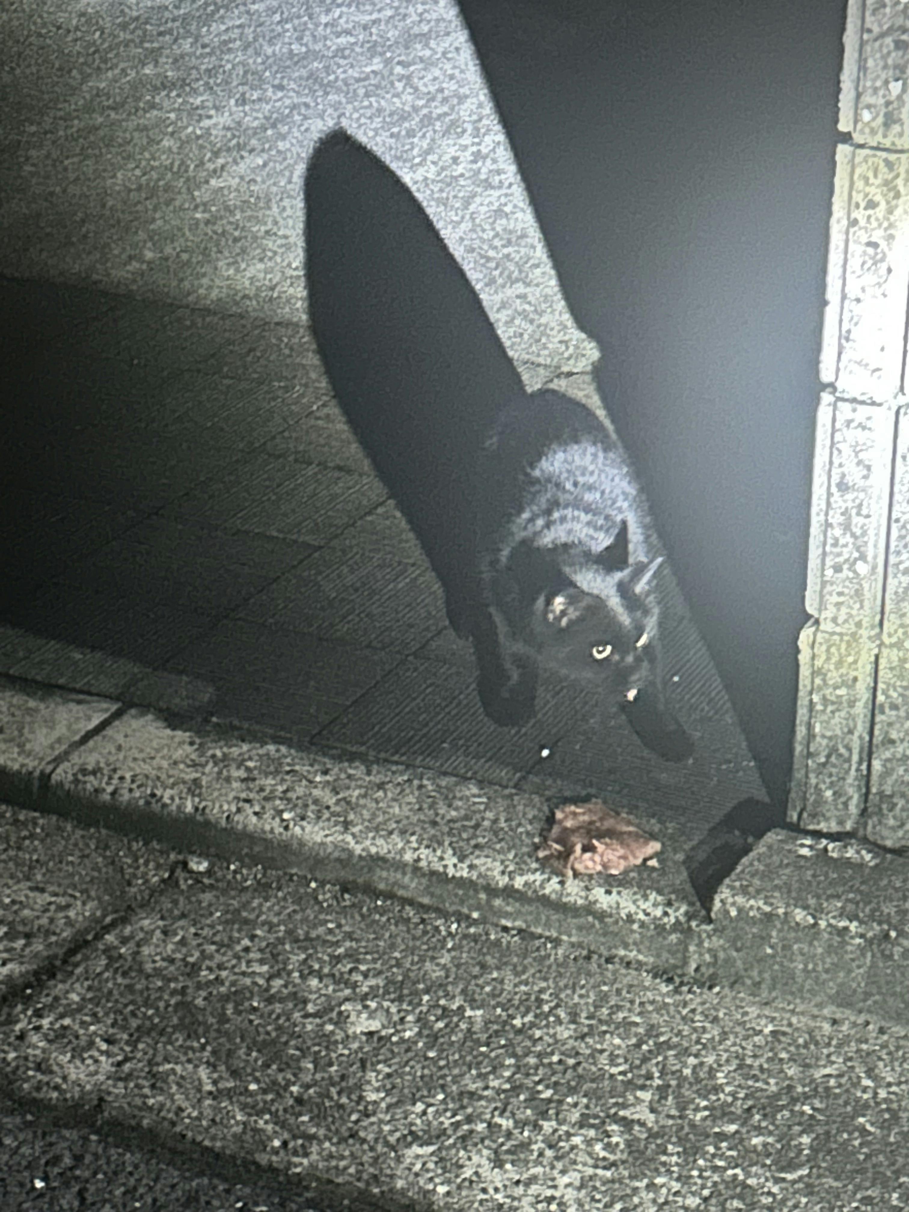 後ろから声を掛けて来た子。この子、もしかしたら子猫の時に保護出来なかった子かも。捕獲器をセットしても,母猫が叩いて扉を閉めてしまう.後々に母猫はTNRできたけど,子猫3匹は他のボランティア団体が引き受けてくれた.思うにサモンちゃんも一族かも知れない.保護を決めた日から黒仔猫が来なくなった。その子サモンのような気がする