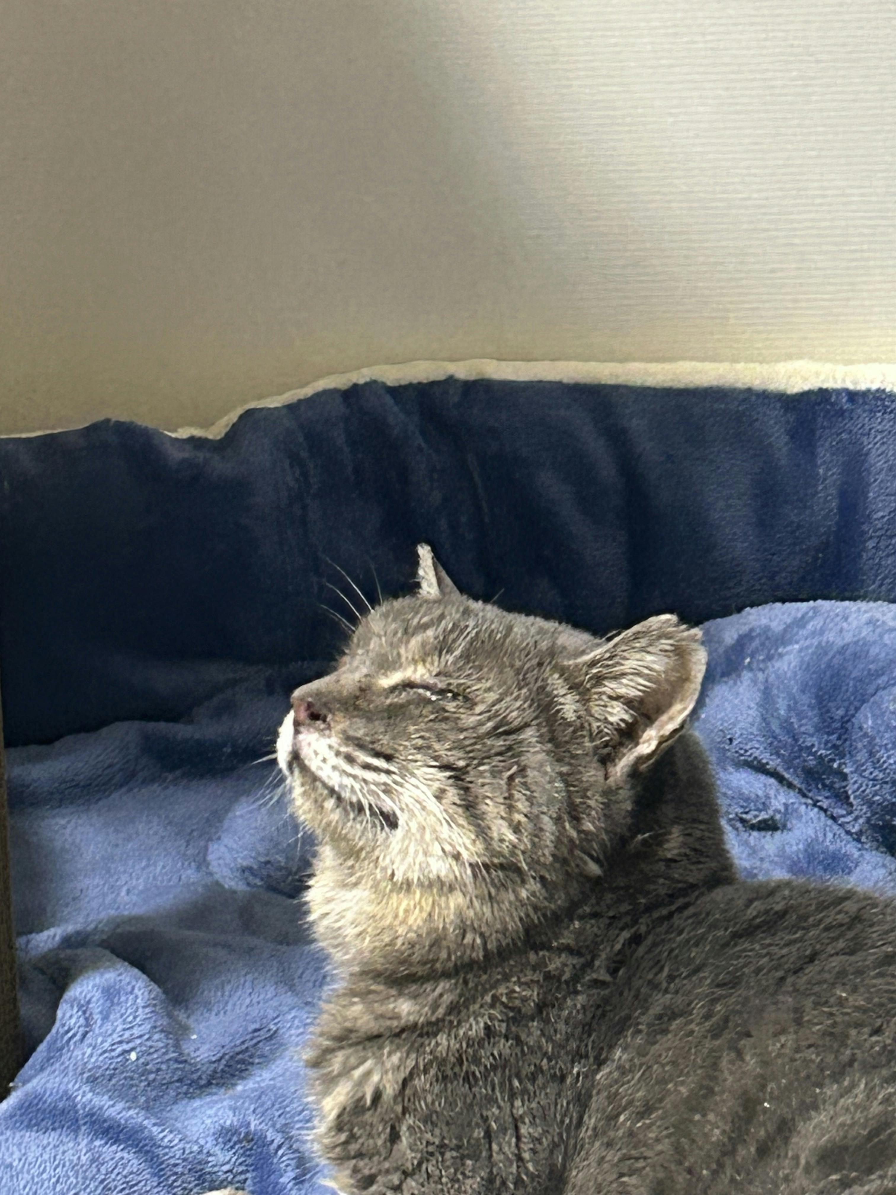 かなりの高年齢です。長い長い年月,外で生きてきました。フード下さる方に恵まれて地域猫として生きてきました。