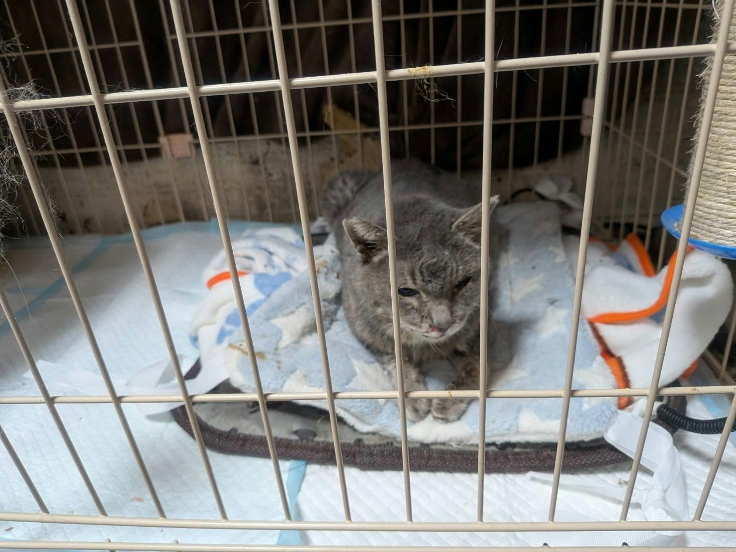 7月の暑い夜、緊急保護したミおばあちゃん。12月になって鼻血が出るようになりました。リンパ腫で,ここ数日鼻が腫れてきた。昨日グッタリしてるって,いつもサポートしてくださる竹内さんが自宅に連れ帰ってくれました。