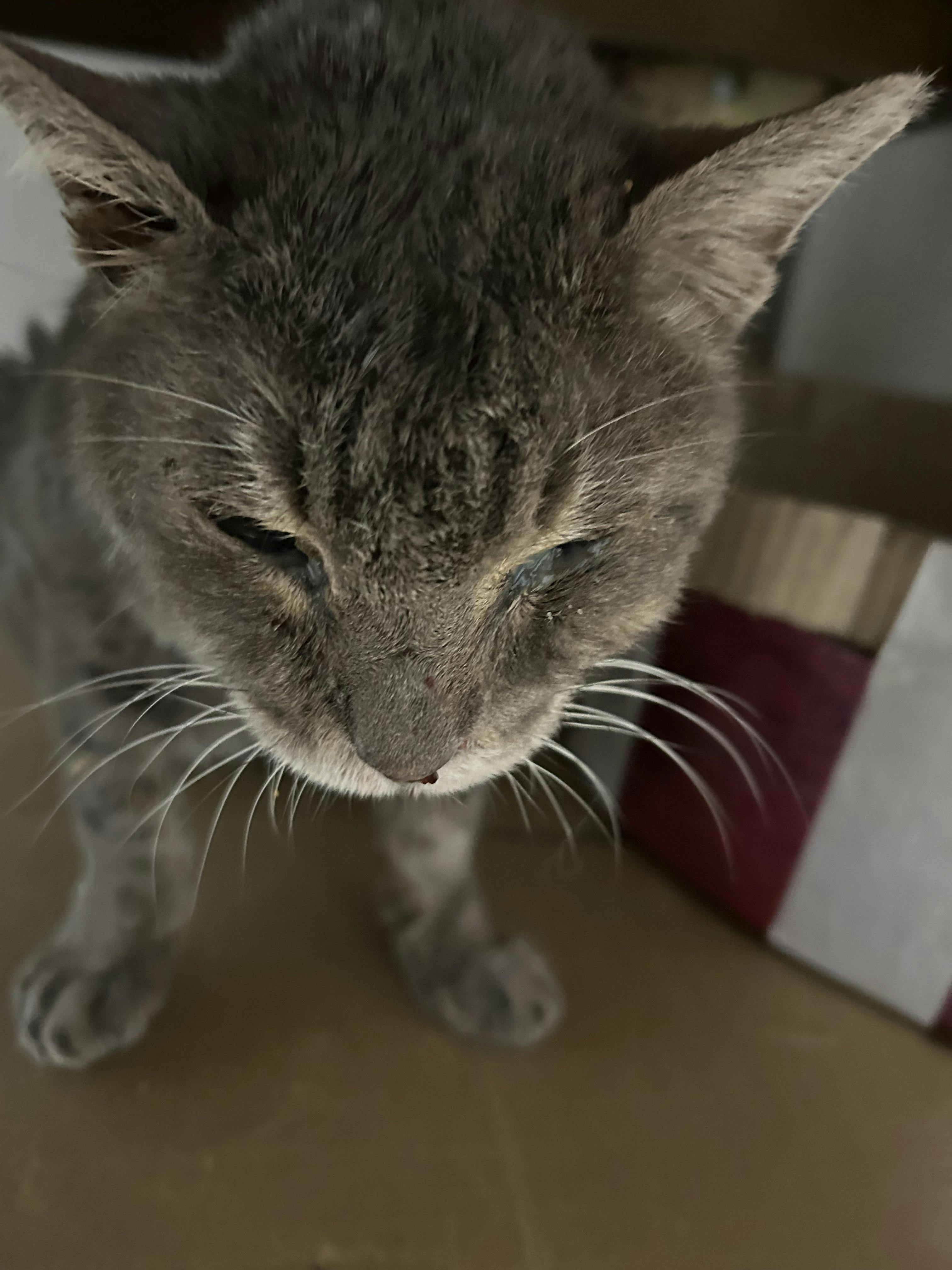 心配な事 ①サモンちゃん咳込んでた。薬を飲ませてるけど。冬が来るたび保護を試みてきた。警戒されて無理だった.でも今年は抱き上げれるようになってる。昨夜は鼻水を絞ってあげれた。シェルターが早く完成すれば大きなケージに入れる事が出来るけど,今の部屋では無理。
