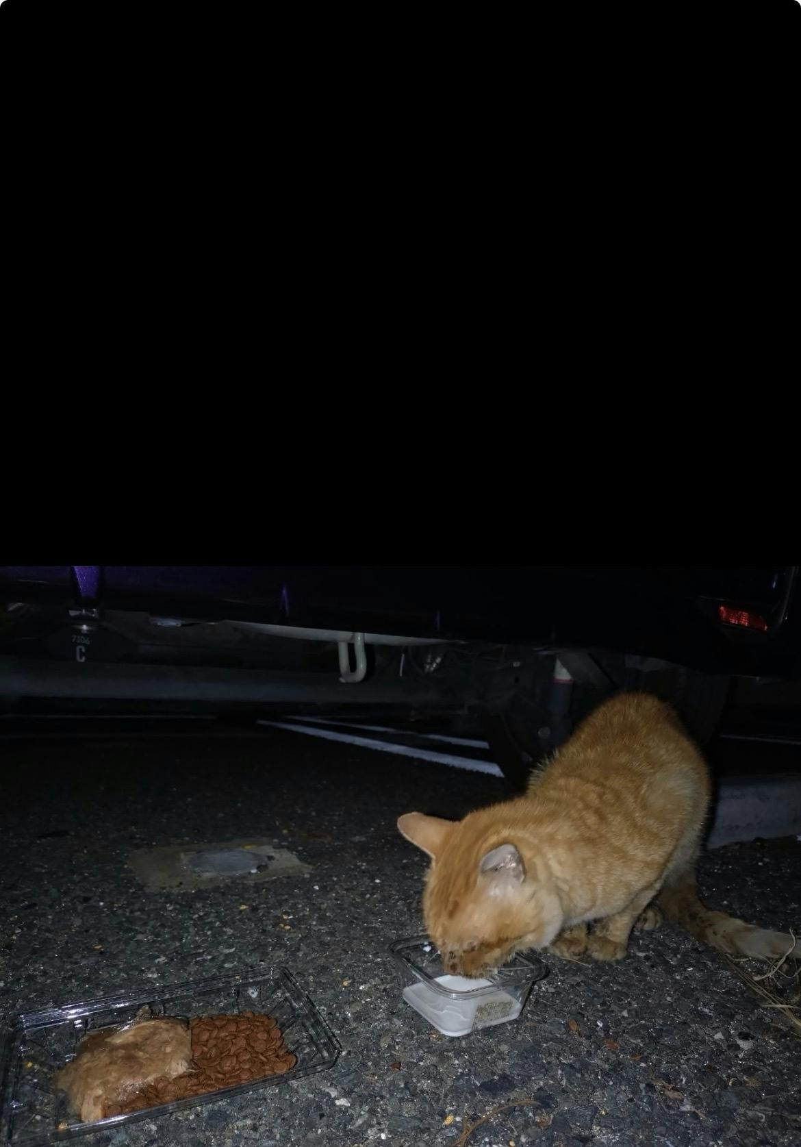 オジサンからメッセージでチャトラが来た。牛乳だけ口にした。他は食べなかったらしい。