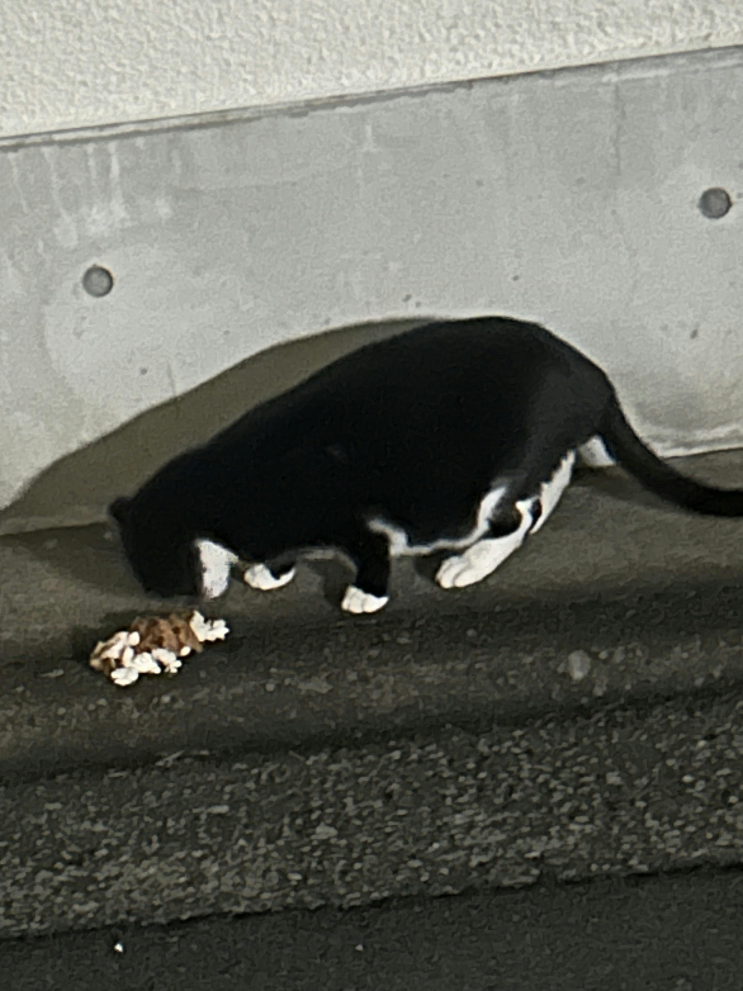今年初めて会います。ほっとしました.自転車を追って次のエサ場にも付いて来て又,食べました。