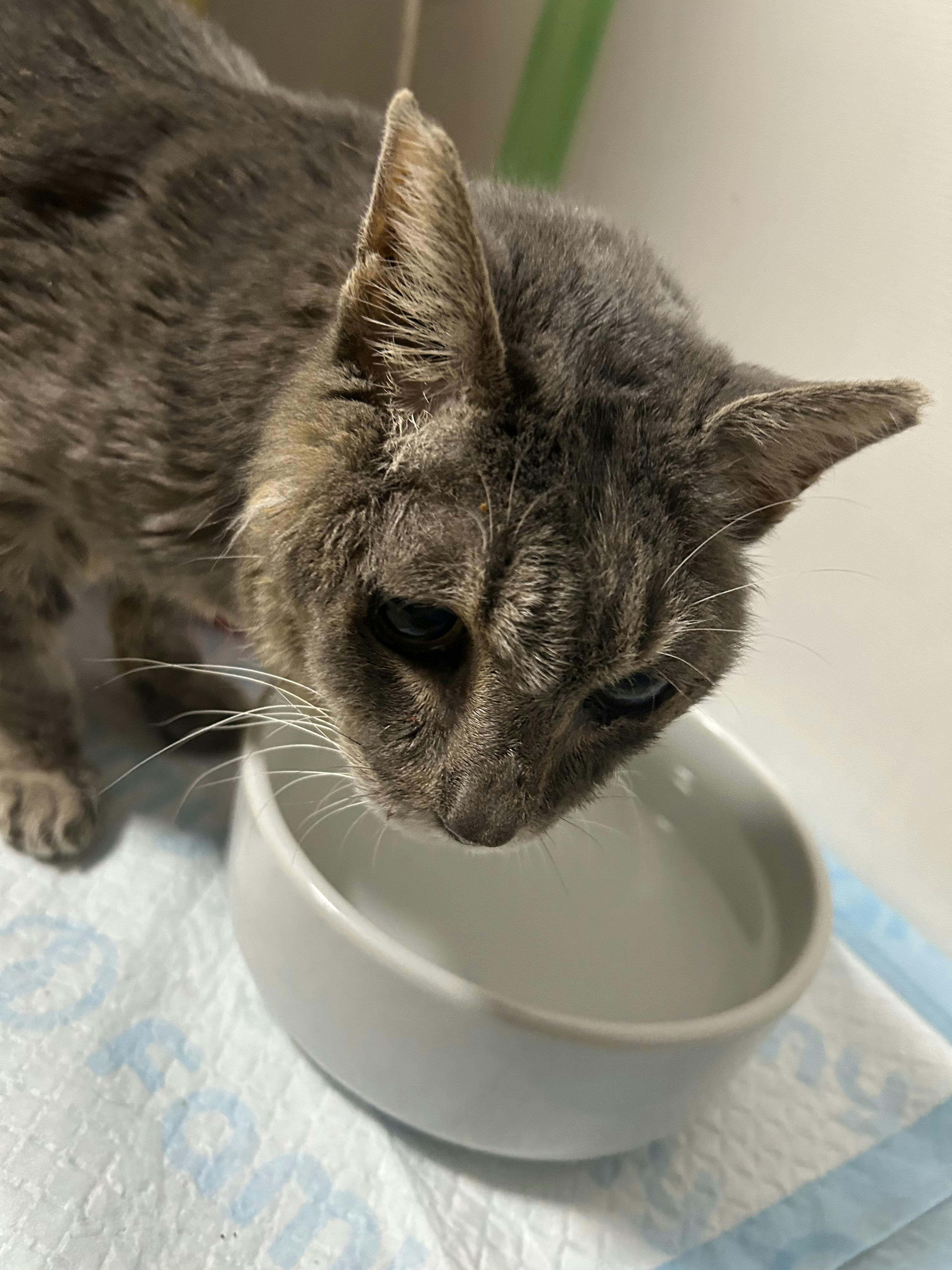 手で食べさせるとad缶を1日1個弱食べます。だけど,痩せてきました。
