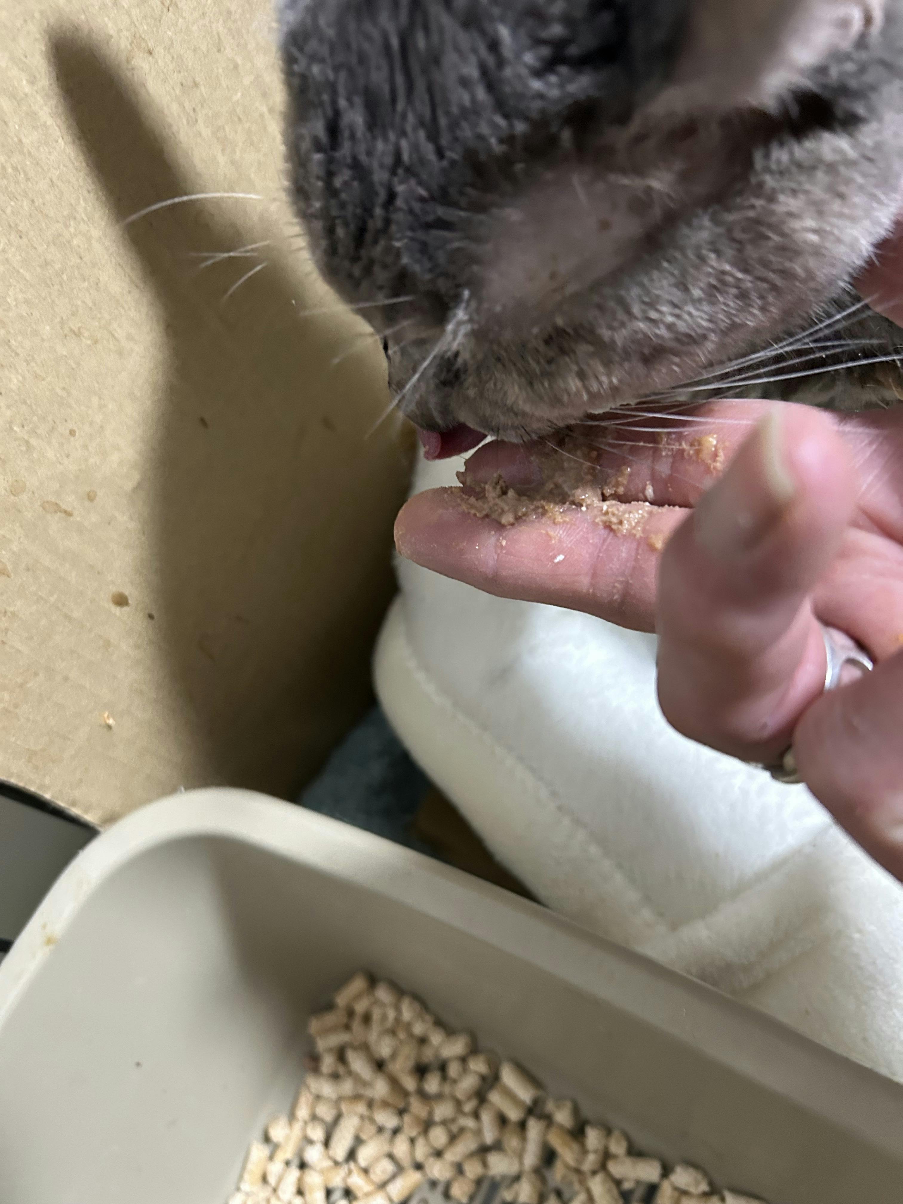 グレコおばあちゃんも寝てばかりで食べる事を忘れてます.なので今日から食べさせてます。