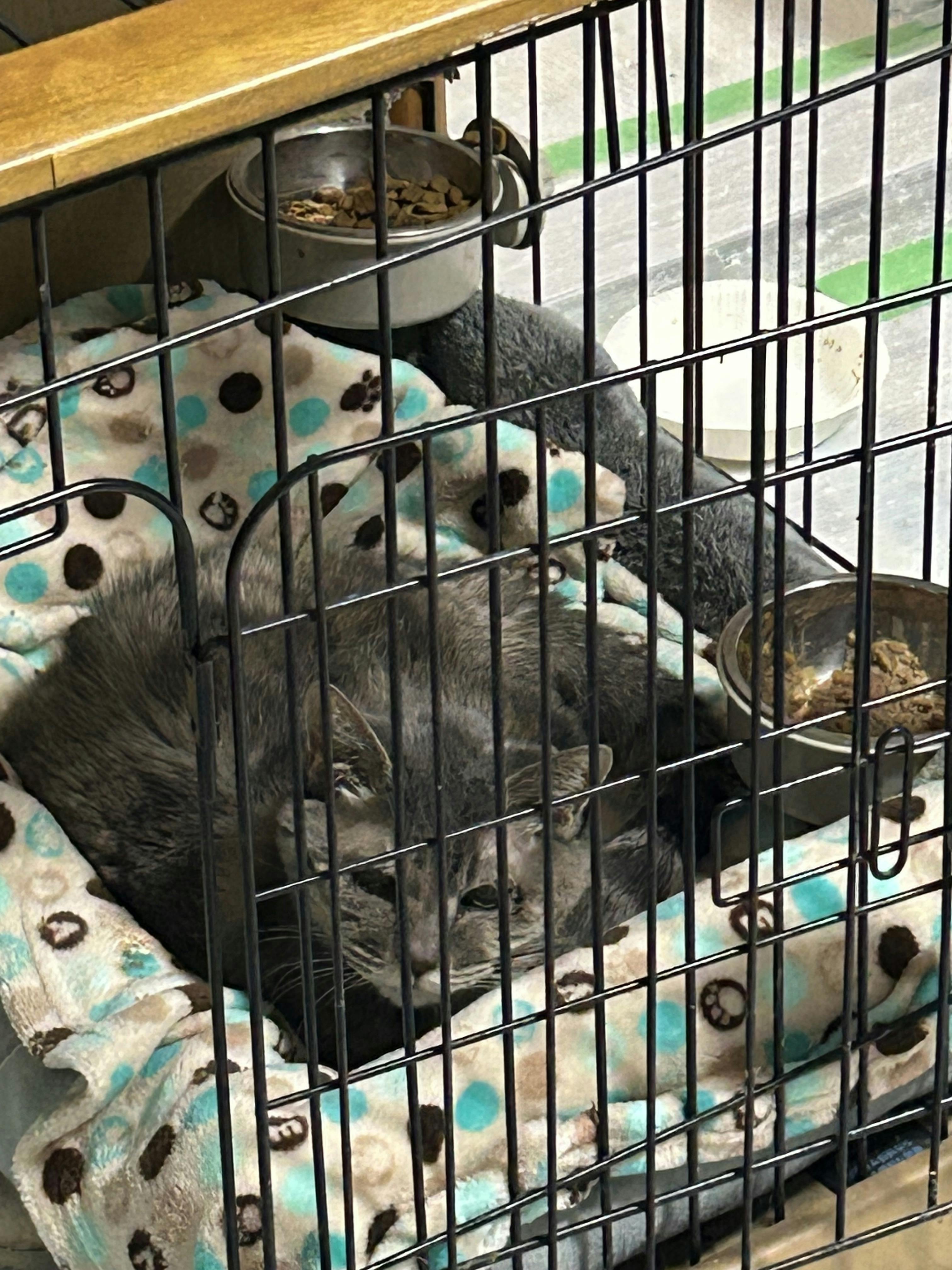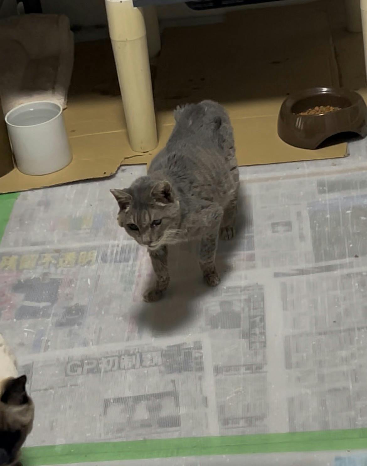 朝,様子を見に来たらカリカリを美味しそーに食べてた。私にスタスタと近づいて来た。すごい生命力。