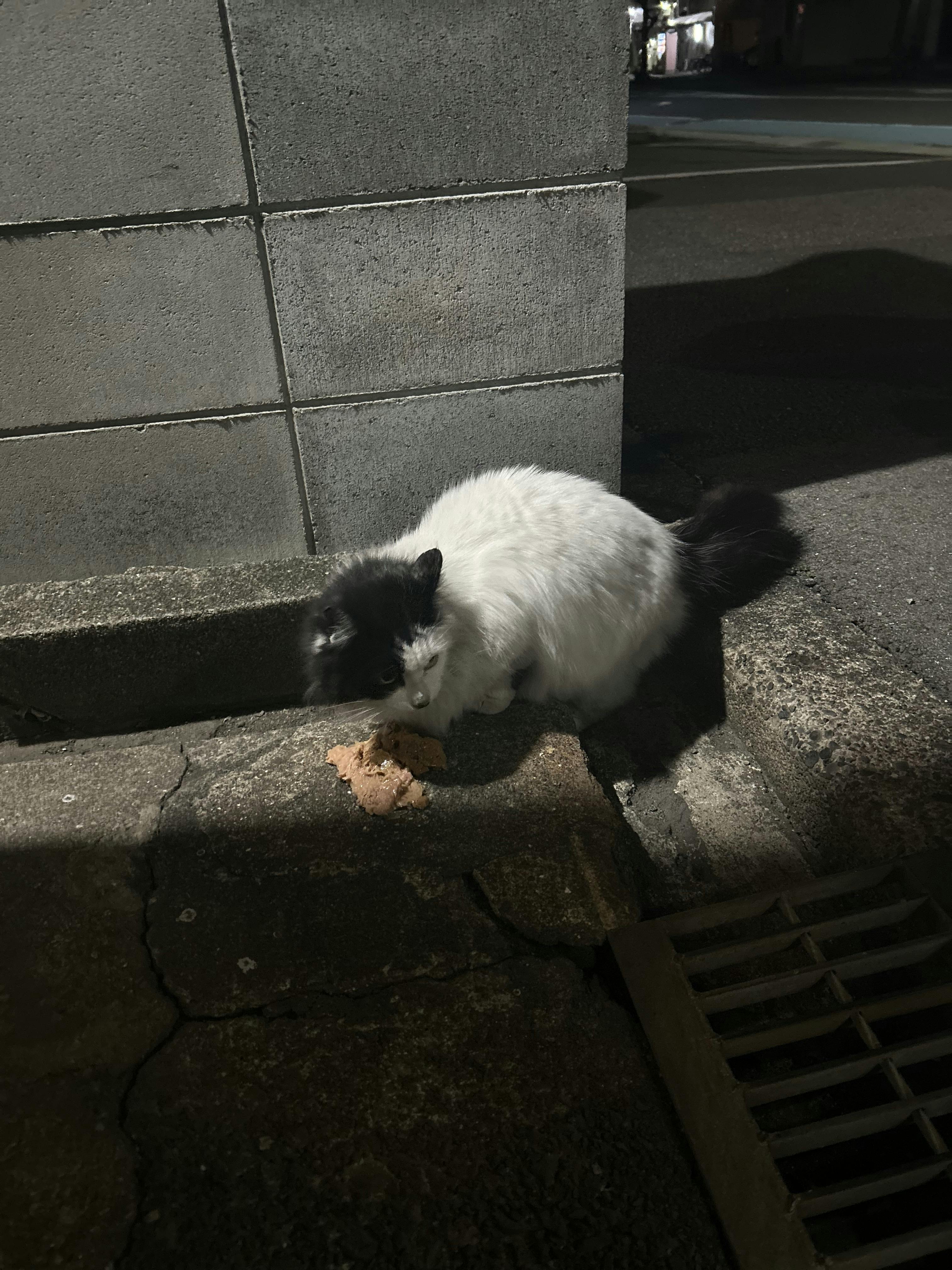 黒猫サモンちゃん達の器を回収に行きササミをあげてたら