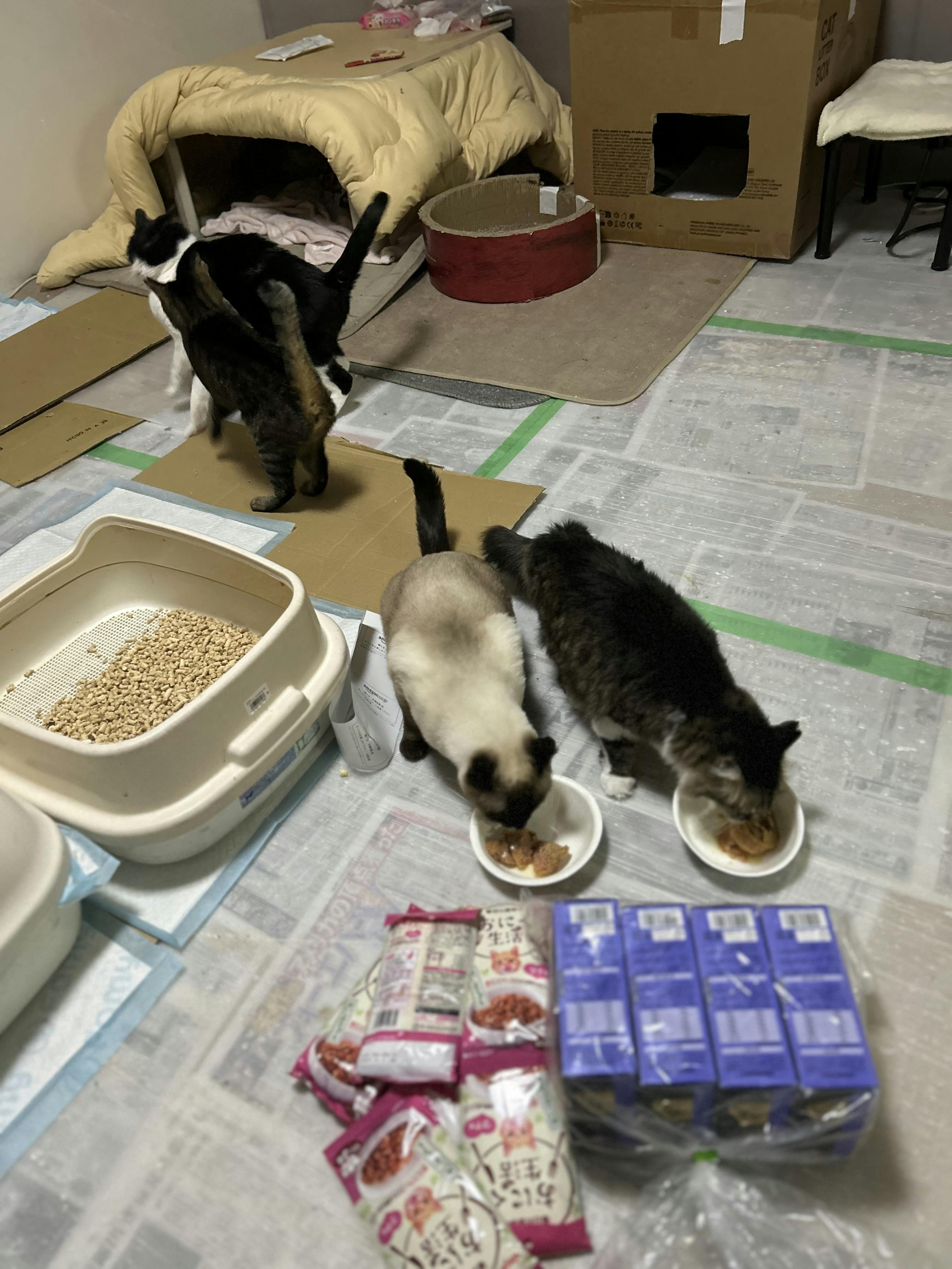 ありがとうございます。早速みんな食べてます。今日は激寒いです。外の子のお腹をいっぱいにします。