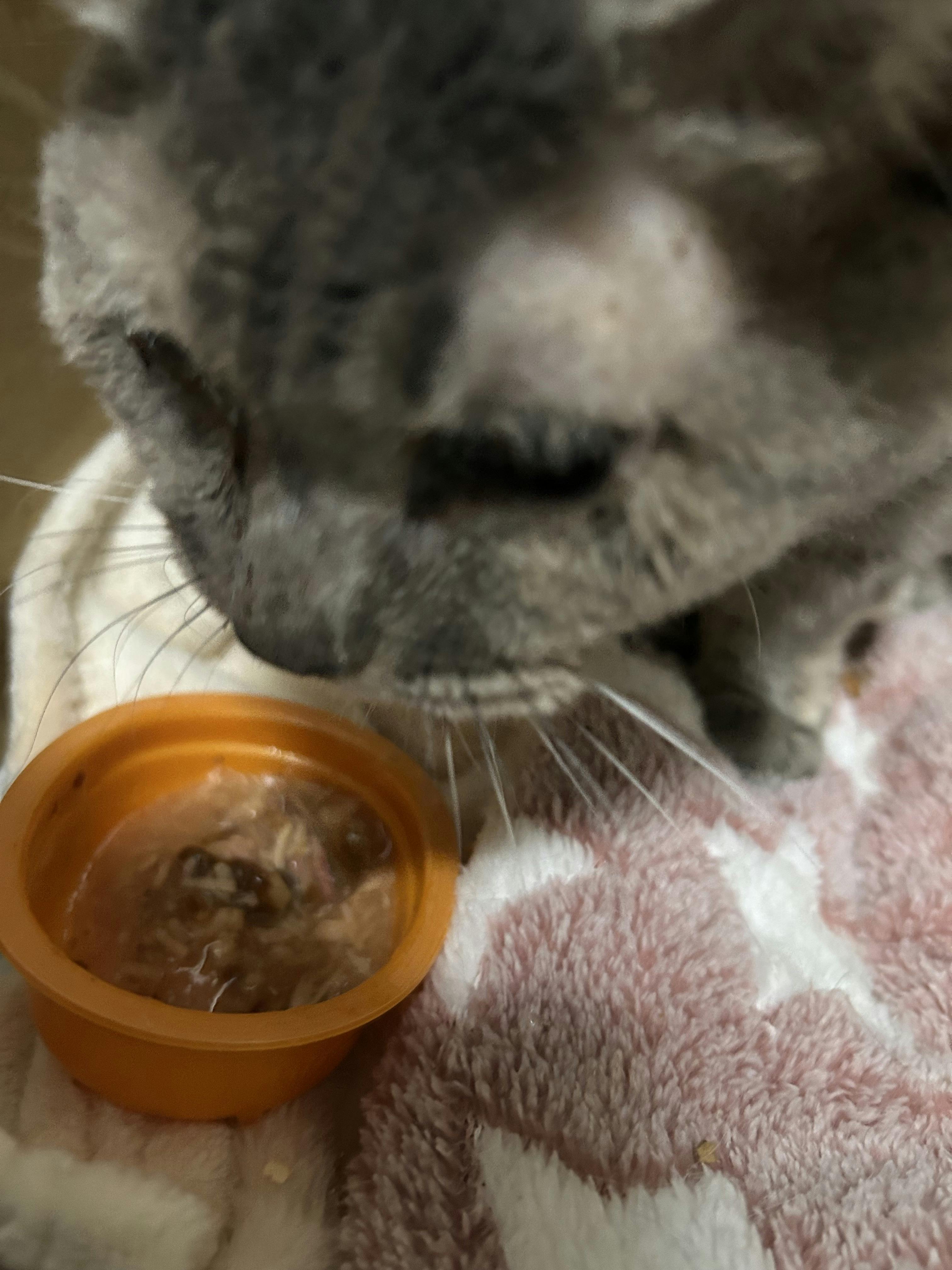 カラスに狙われてた仔猫をカラスから奪い去り保護した子です。