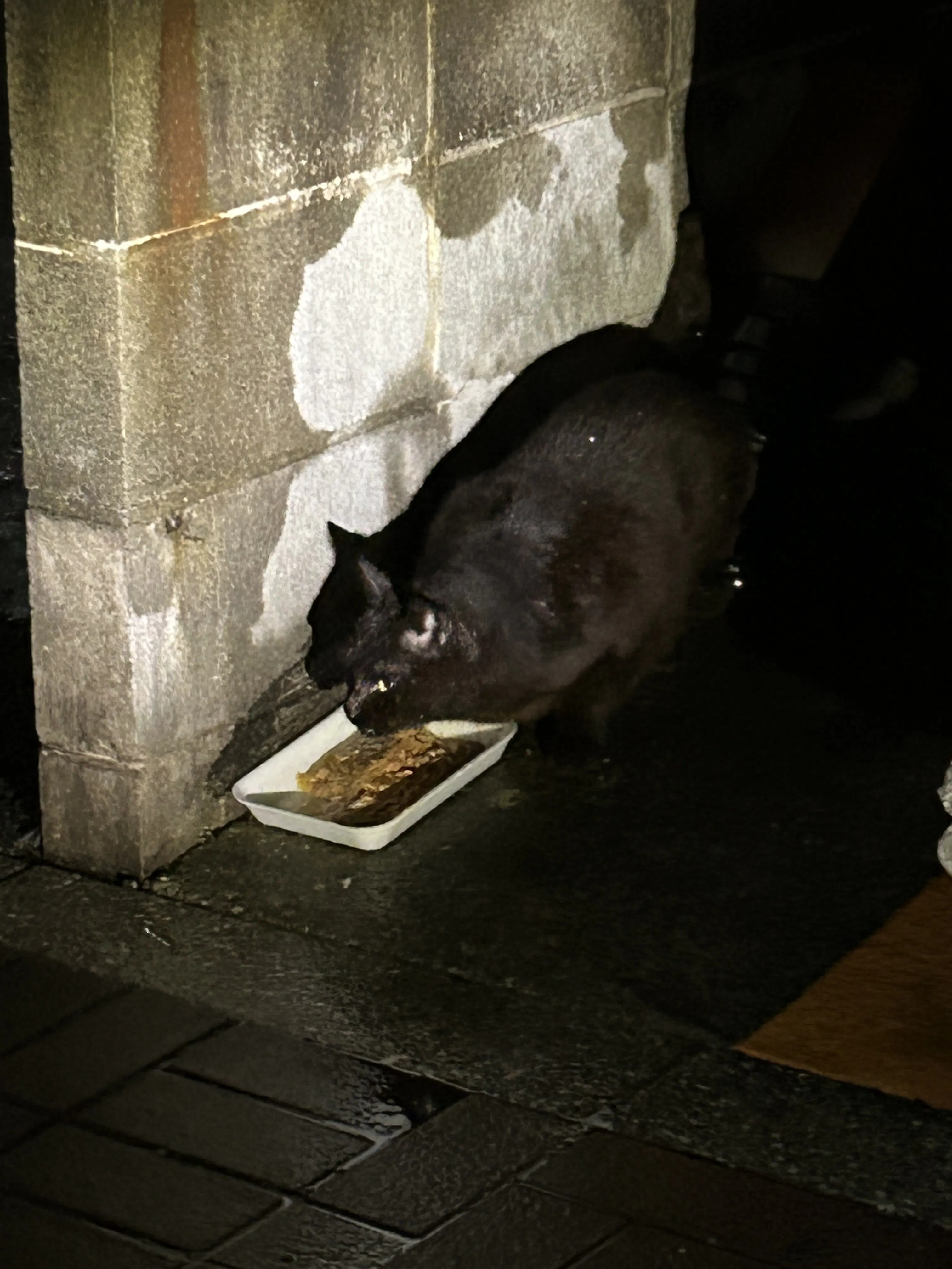 車の下に置いましたが車の下は拒否して濡れながら食べてる。