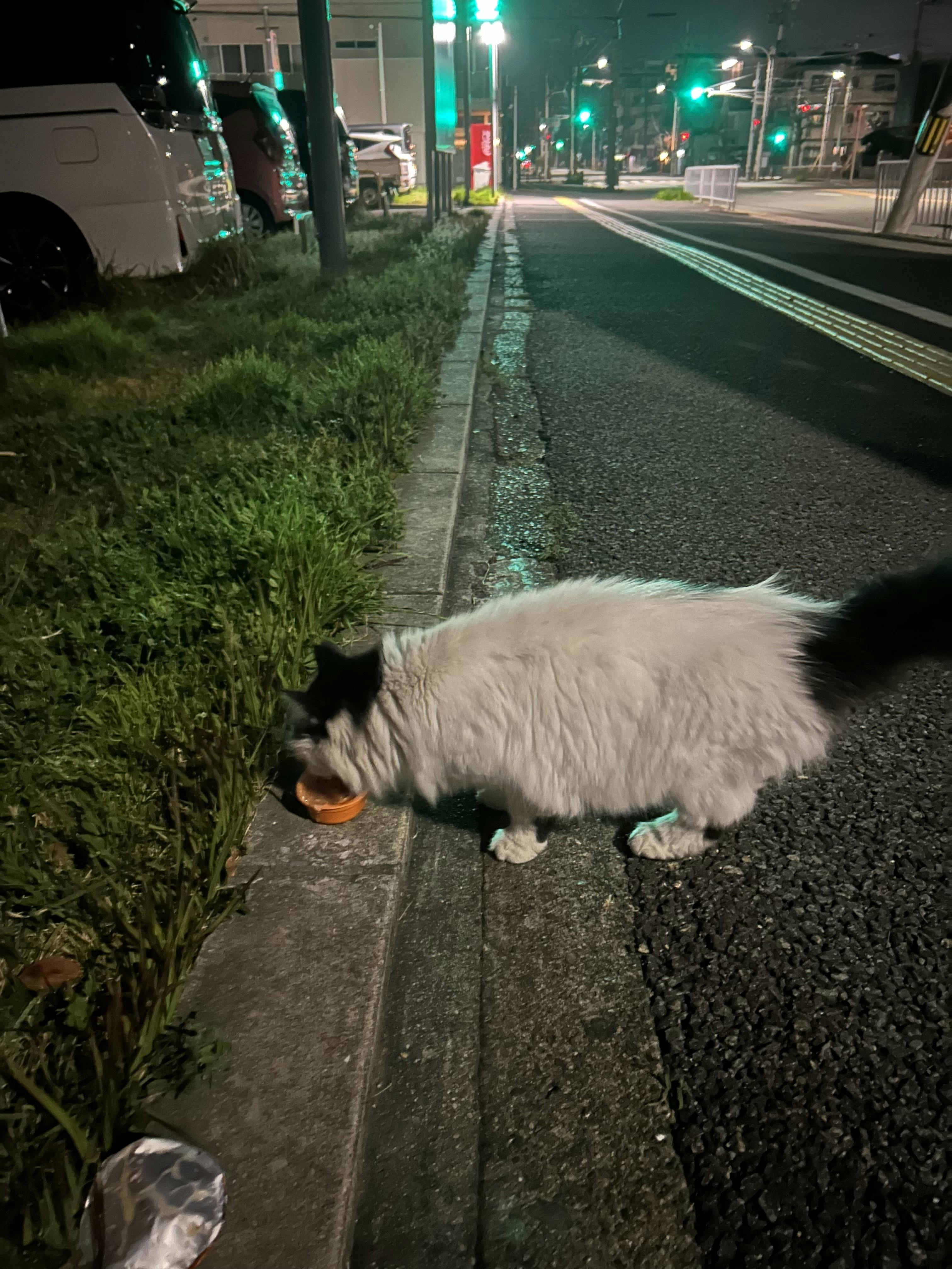 2時から1時間雨が止んでくれ,昨夜の参加猫26匹,誰も濡れずに食べました。