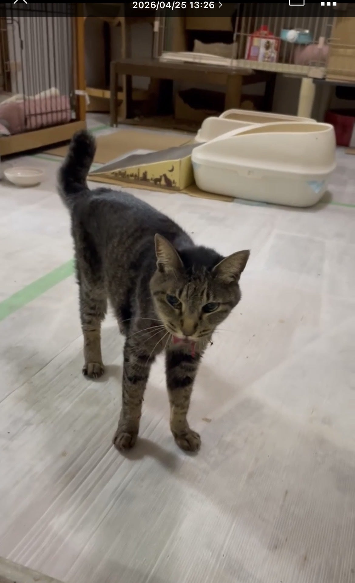 まだシェルターがなかった私は、職場で飼う許可をもらい,シェルターを作ってからラテはメンバーになりました。