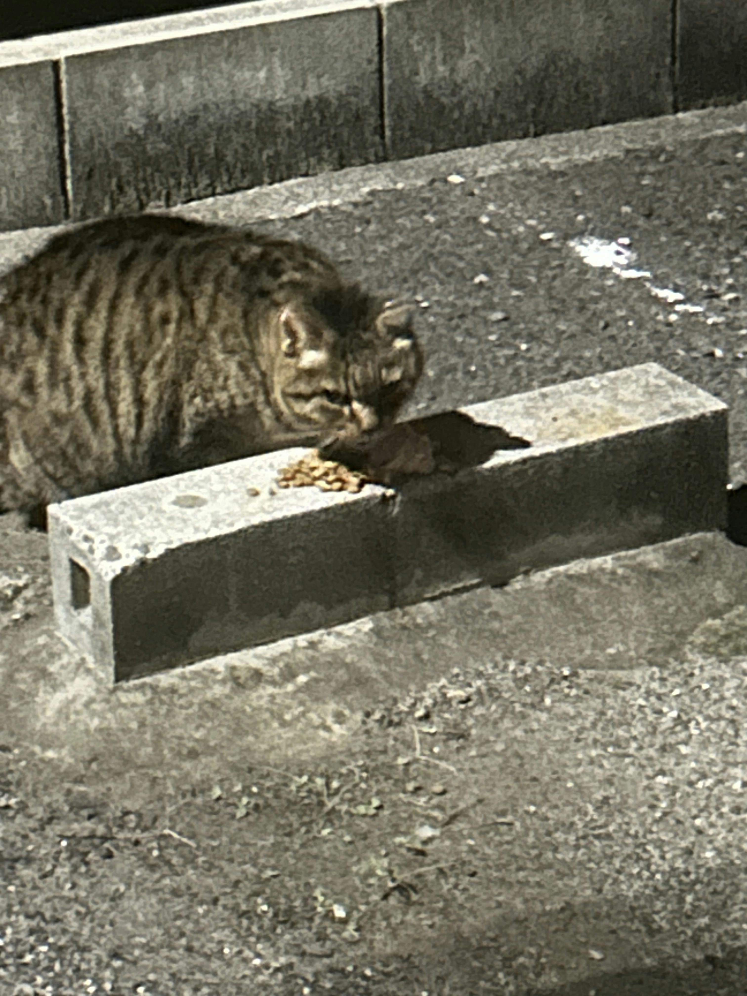 • 写真はデカ太郎です。毎晩11時に食べますが待たせたくないので,ここ二、三日は30分早めてます。次は日にちが変わりam3:30位に器回収に行くと待ってます一昨日は風が強くて,デカのデカい体は冷え切ってました。マッサージしても温くはなりますんでした。昨日は風がなく,私も手袋が欲しいとは思わなく、デカを撫でると温かくなってきました。会ってすぐに家で温めてきた手でデカの手を包みます。恋人同士ならここでキスでしょうか、、猫と人間なので顔を撫でててあげるだけですが、デカはゴロゴロ言ってます。昨日はチャトラ以外,みんな揃った。みんな,しっかり食べて元気に春を迎えようね。Horiも頑張ります。皆様、どうか,この子達に愛をお願いします。Horiにパワーを送ってください。クラファン挑戦,達成したいです。 もっと見る