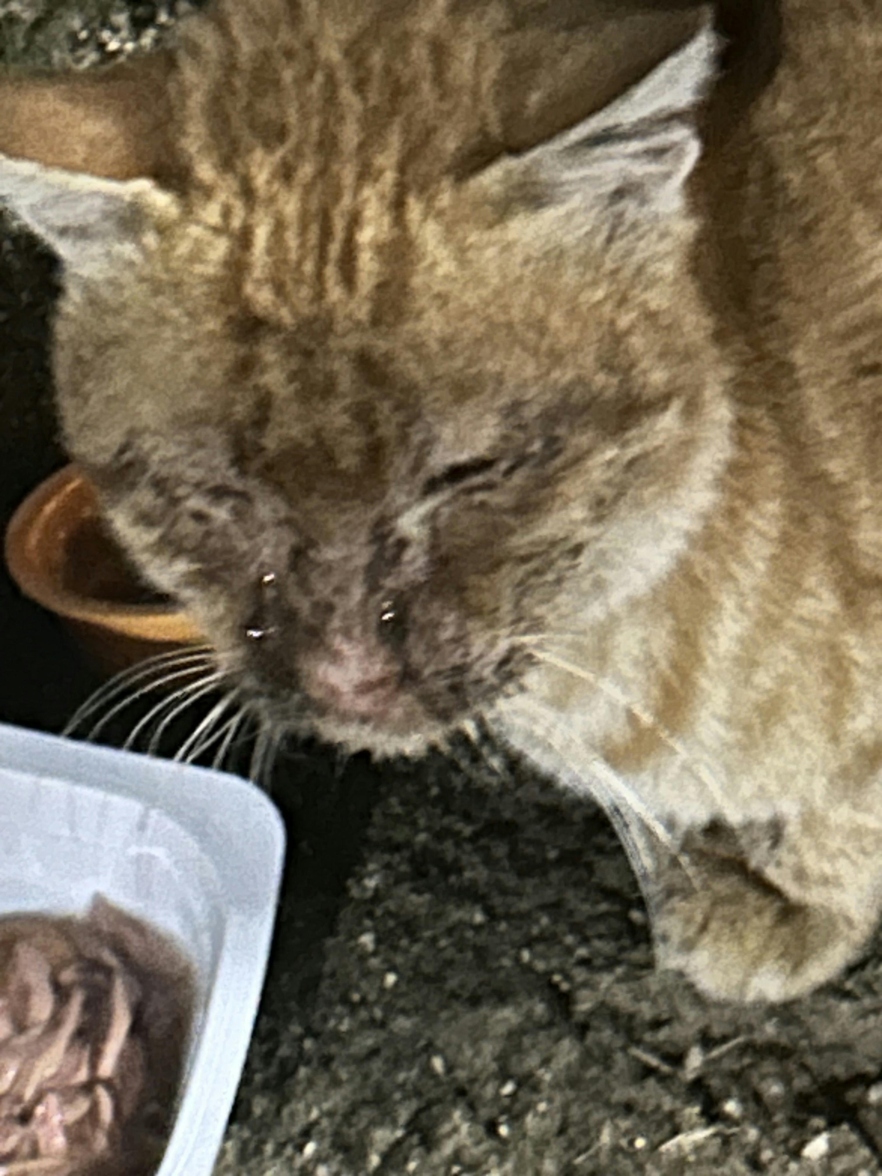 2025/12/31 13:08保護したい。ずーっと前からね私の願い。この間,ガツガツ食べてたけど,一昨日,昨日と匂いを感じることが出来なくて,食べない。近くに置くと顔を近づけるけど手が飛んで来て威嚇。シェルターに入れたら風邪が蔓延はするだろう。今は狭い部屋だし、猫脱走防止してないから窓は開けられない。ケージも一段のしかない.ローカに置いて隔離しかない。全く触れない。攻撃的。色々と考えてみても厳しい。もう3年は悩んでる。意を決してシェルターに網とキャリーとシートと毛布と革手袋を取りに行って戻ると姿は消えてた。フードは食べてない.探したけど会えなくて,他の子の元へ配達に行った2時間半後のam1:30オジサンからメッセージでチャトラが来た。牛乳だけ口にした。他は食べなかったらしい。暖かい場所でホッとさせてあげたいけど居場所はどうすれば良いのか。 もっと見る