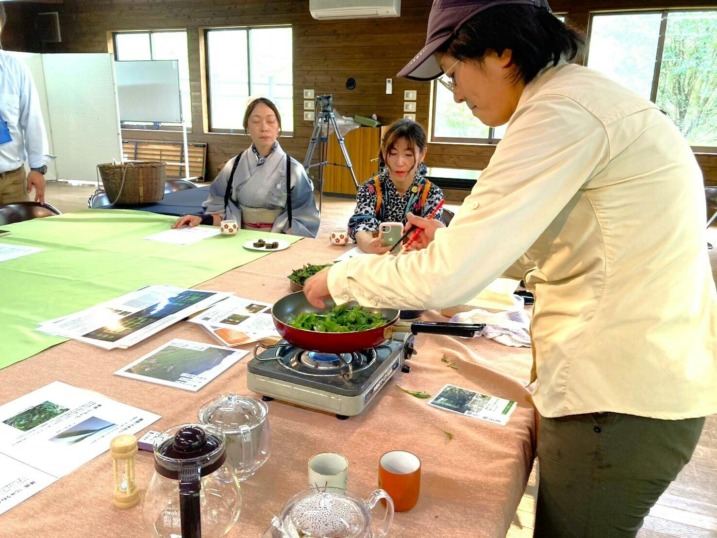 お茶の葉を摘んだあとの加工は、梅田ふるさとセンターさんの施設内で行いました♪