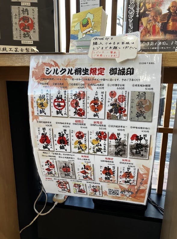 桐生城通常御城印は、桐生市観光情報センター「シルクル桐生」さまで販売中です