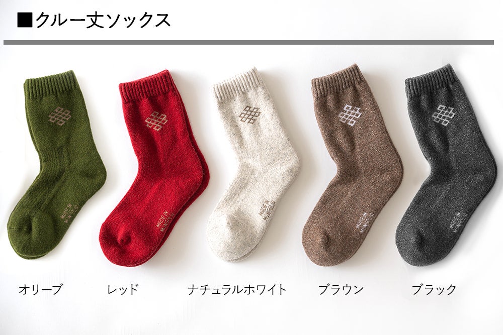 クルー丈は5色、ひざ下丈は3色、くるぶし丈は2色からお好きな色をお選びください。