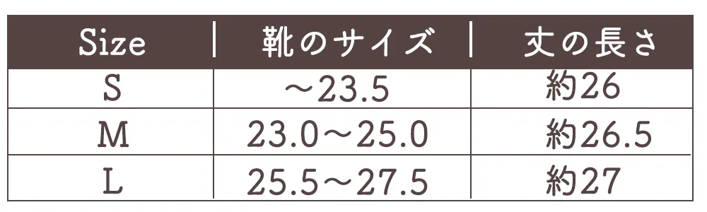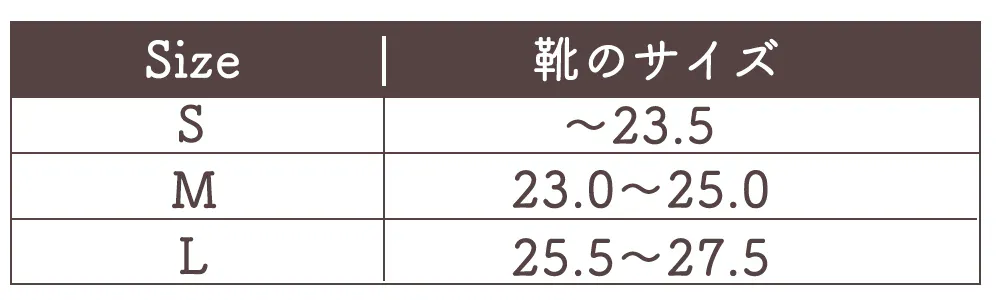 なお、ウールソックスのサイズは以下、3種類からお選び頂けます。
