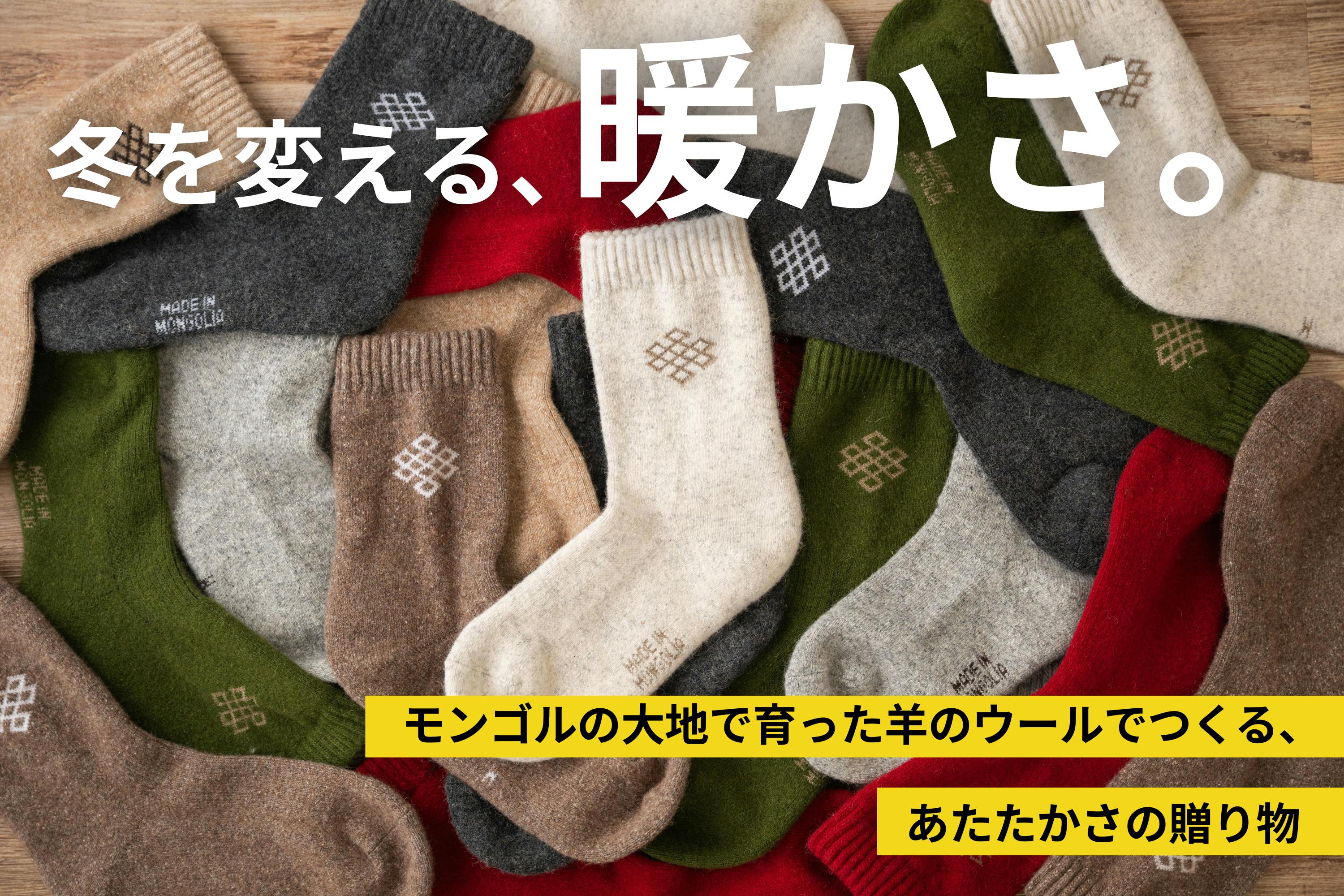 今回のリターン品は、毎年WEBでも大人気の“モンゴル産ウール靴下がぎゅっと詰まった福袋”。