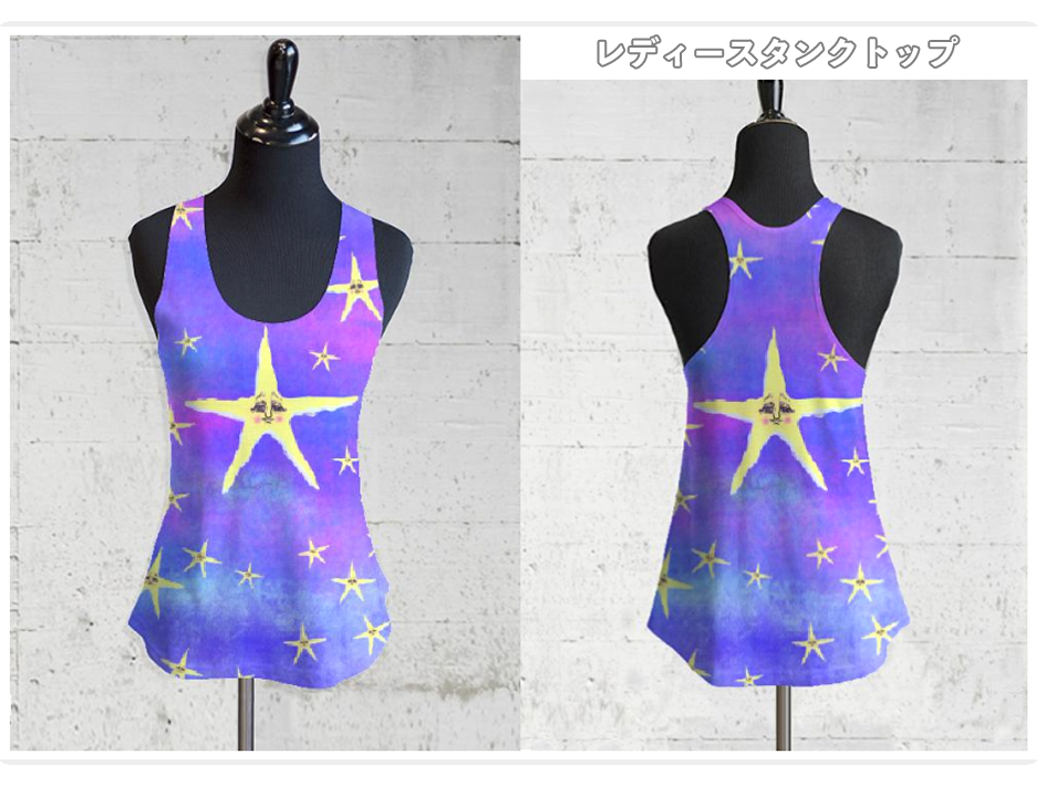 ☆「Dreaming Wish star」全面プリント柔らかジャージー生地レディースタンクトップ