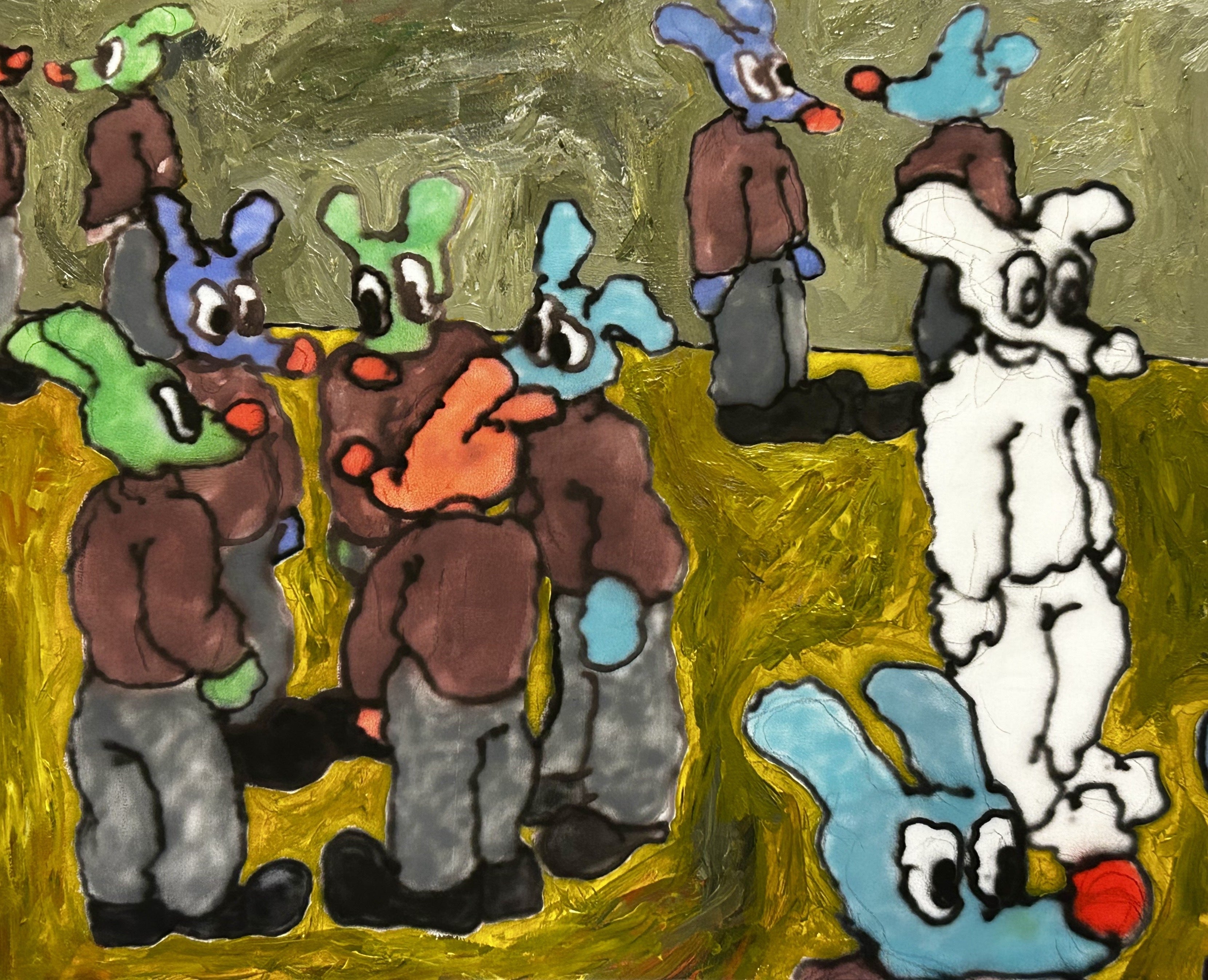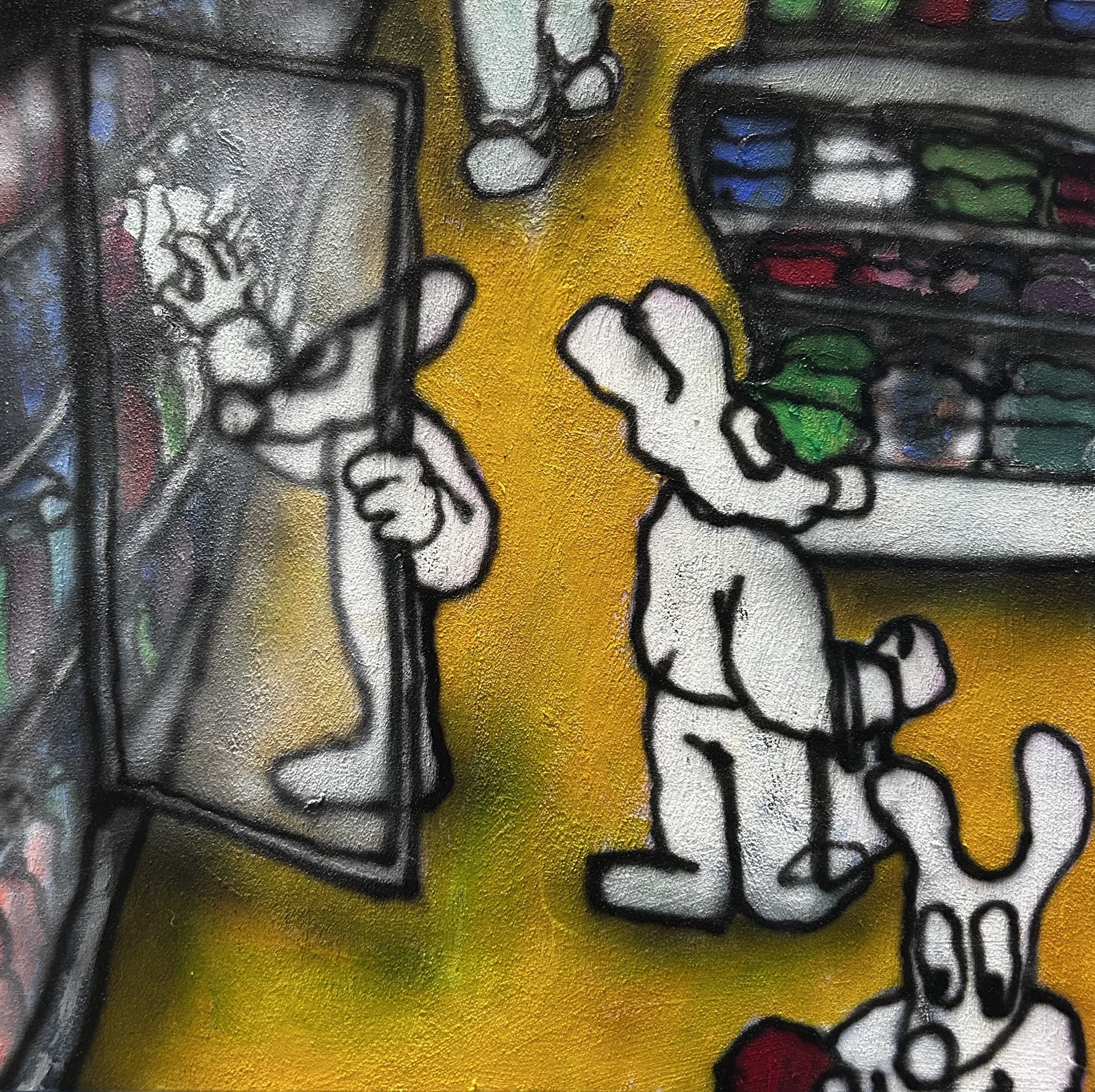 アクリル絵の具やエアブラシ、オイルパステルなどを使用して絵を描いてます。ぼんやりしたものが、絵を描くことによってだんだんはっきりしていくように思えたり、全く違うものになったり、何かを見つけたいという感覚で制作しています。