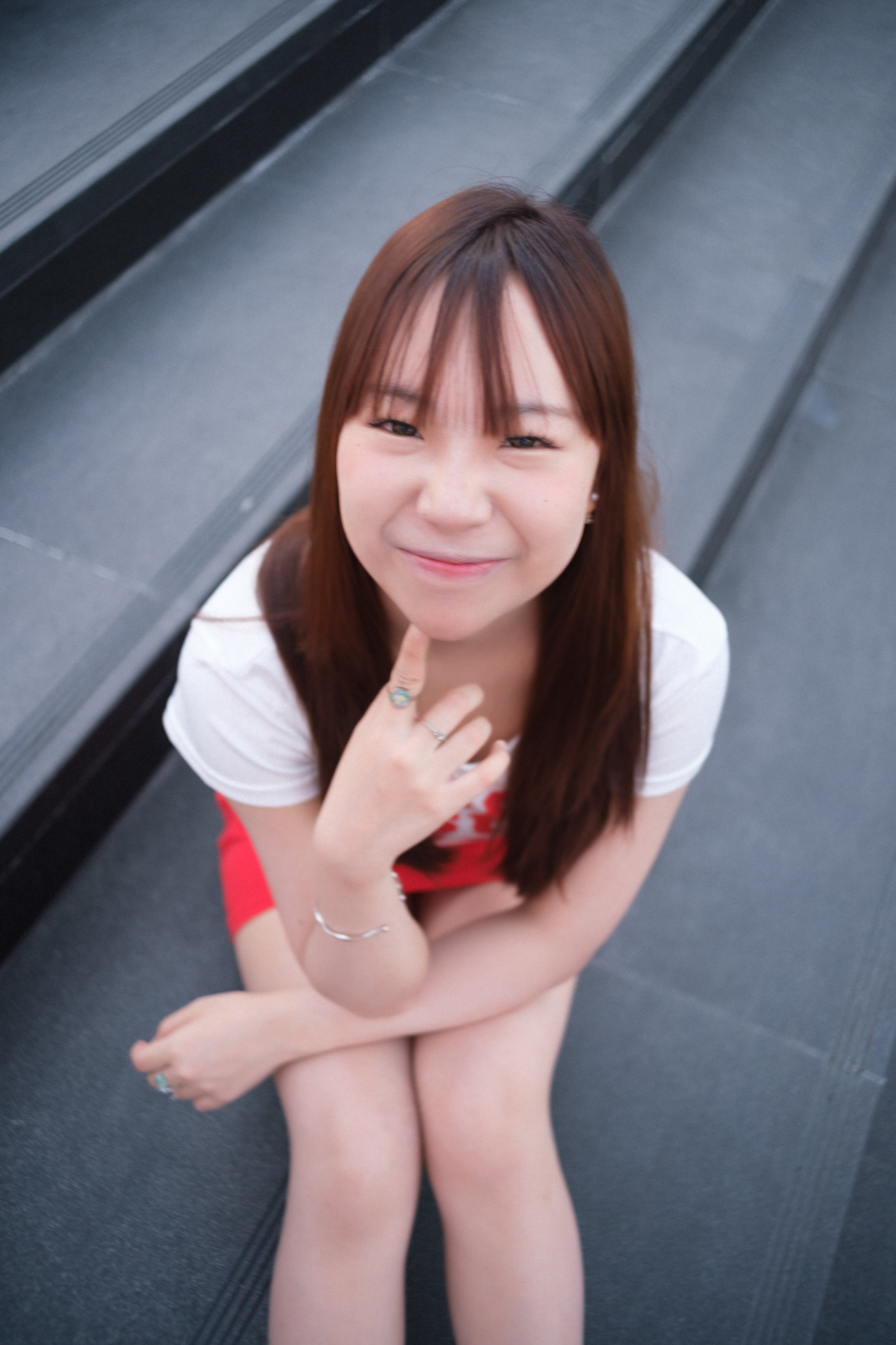 シンプルなスタイリングの中で、赤を効かせたコーディネートがDib Bangkokのミニマルで都会的な空間に美しく映え、シャッターを切るたびに表情が引き立っていきました。