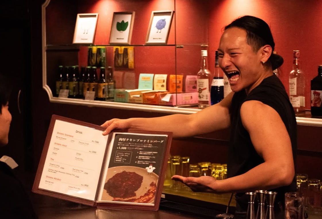 マッチョのパフォーマンス、ヘルシーで美味しい料理、明るいコミュニティ。ここに来るだけで笑顔になれる