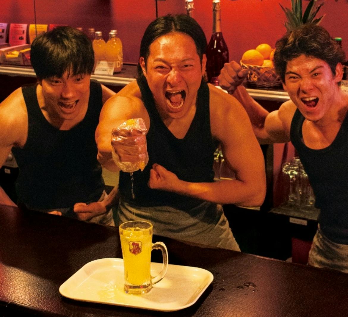 お客様が選んだフルーツを、選んだ“マッチョ”がその場で全力生搾り!