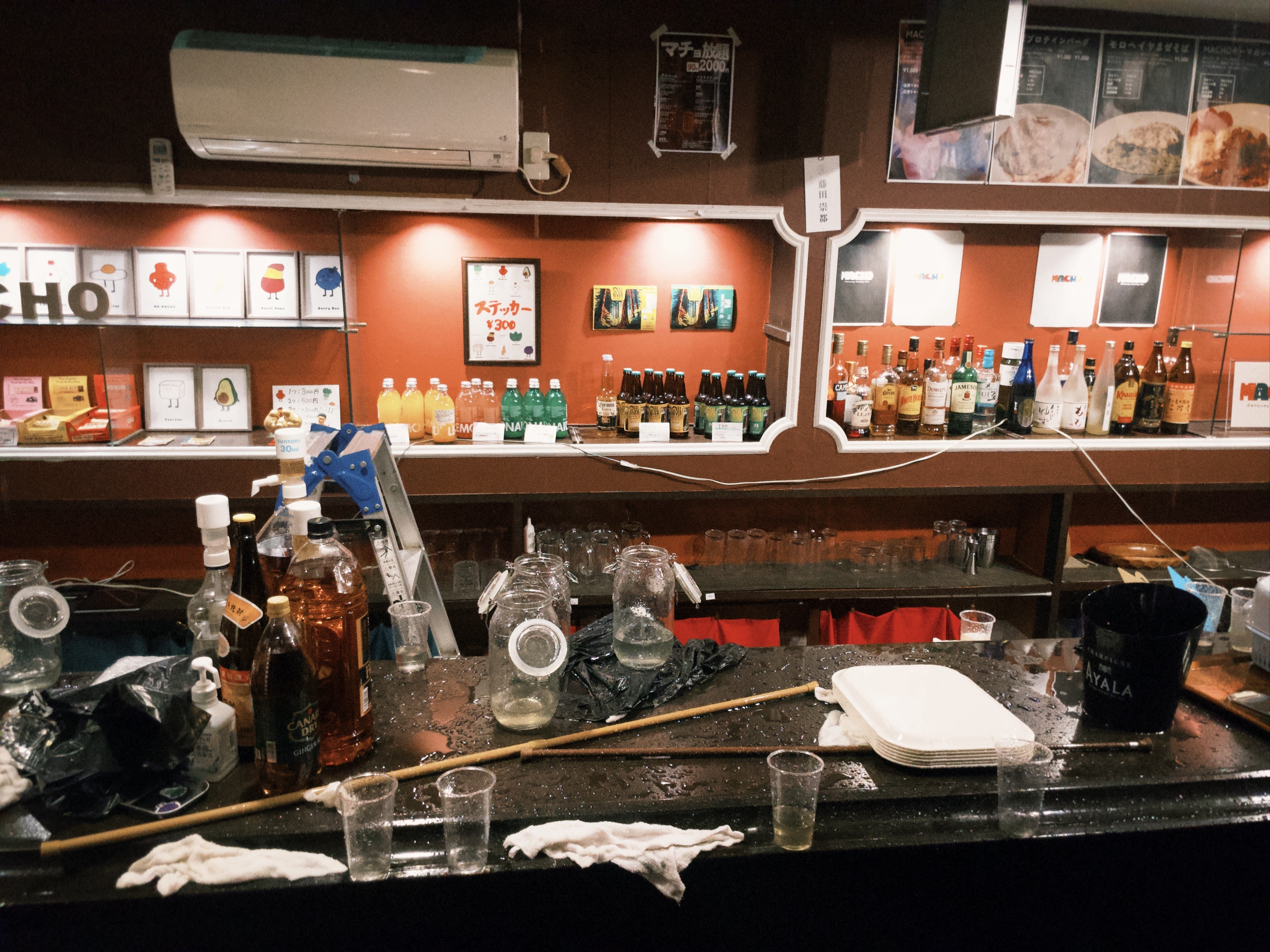 マチョカフェ、天井からの大量水漏れで営業停止中。