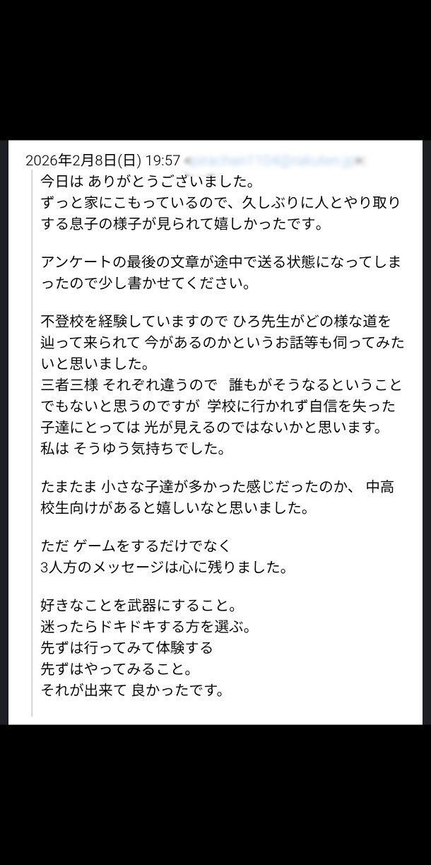 2日間の「メタバースクエスト」が先日無事に終わりました。活動報告は改めてさせていただきますが、今日はこの1通のメールをご紹介させてください。(掲載許可はいただいております)