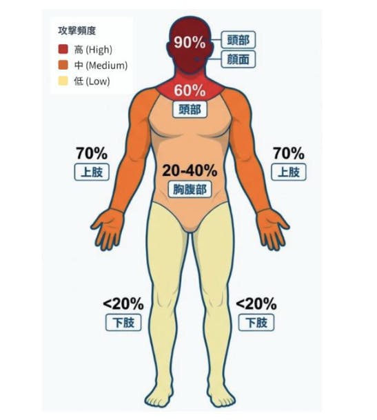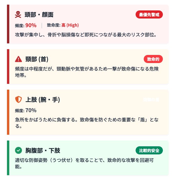 負傷の多くは 顔・頭・前腕 に集中しており、従来装備では対応しきれないケースが目立っています。